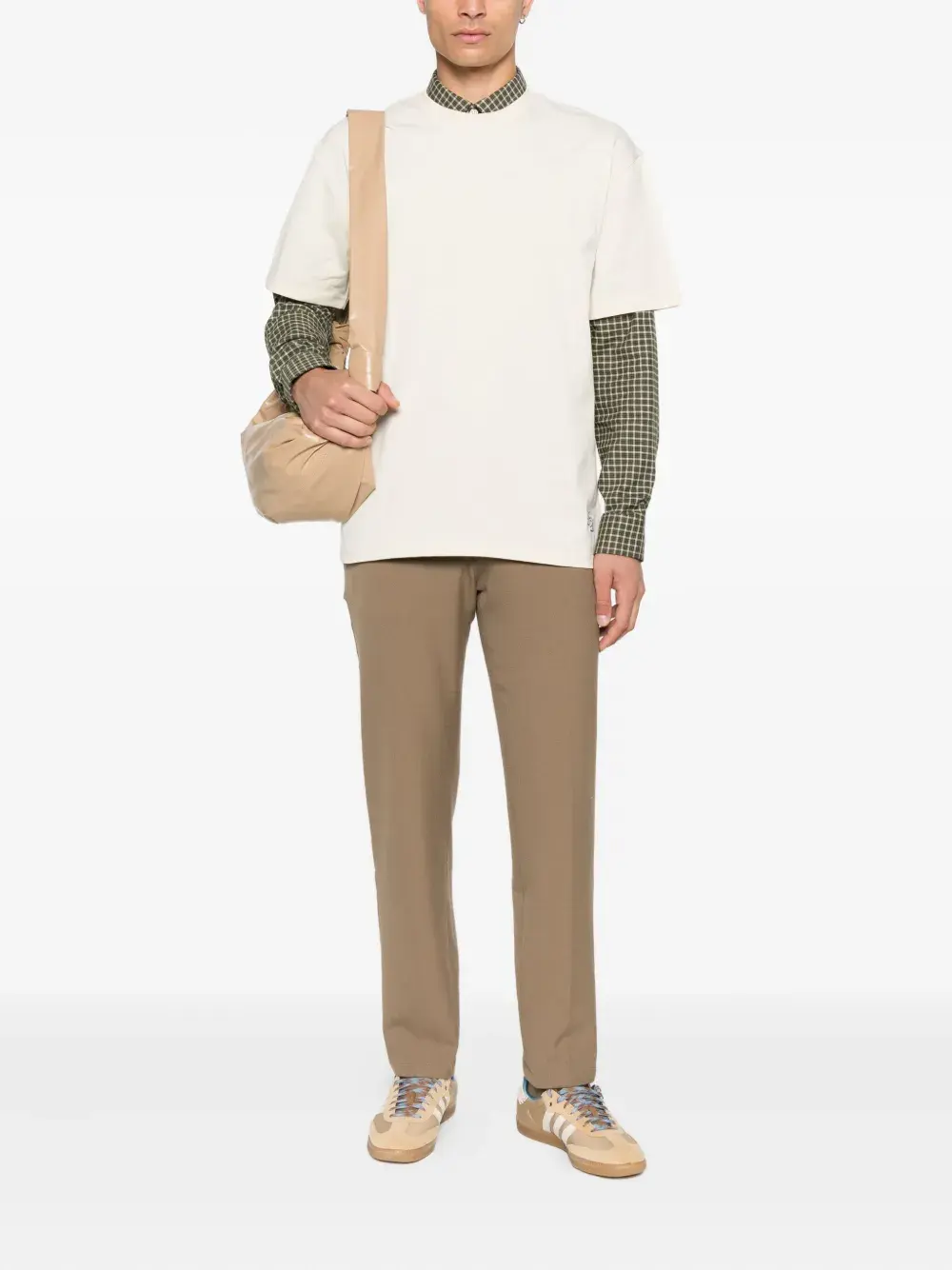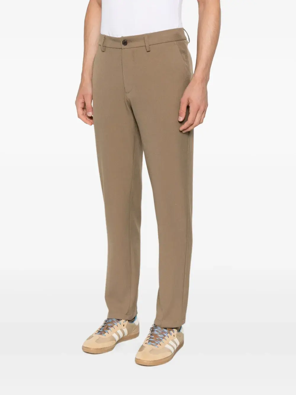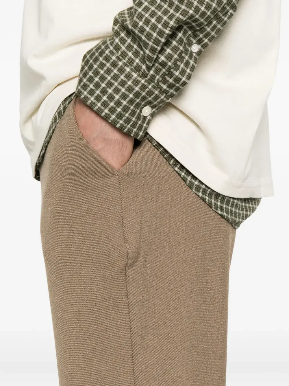 Кунжутно-бежевый, передние карманы, застежка на пуговицы, средняя посадка, приталенный фасон