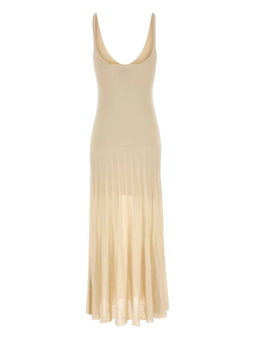 Светло-бежевая ребристая трикотажная юбка миди с V-образным вырезом без рукавов плиссированная
