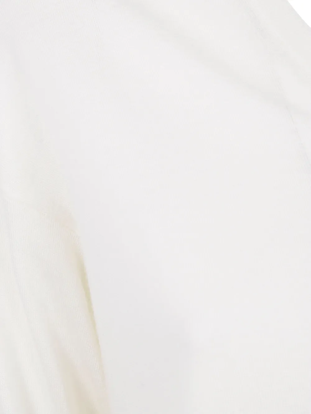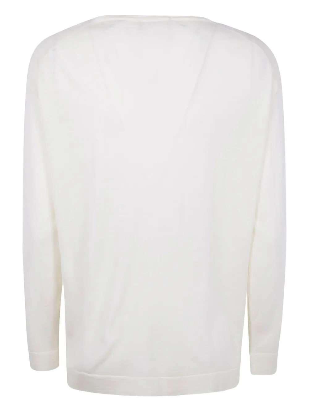 Не совсем белый, V-образный вырез, длинные рукава, ребристые манжеты, прямой подол