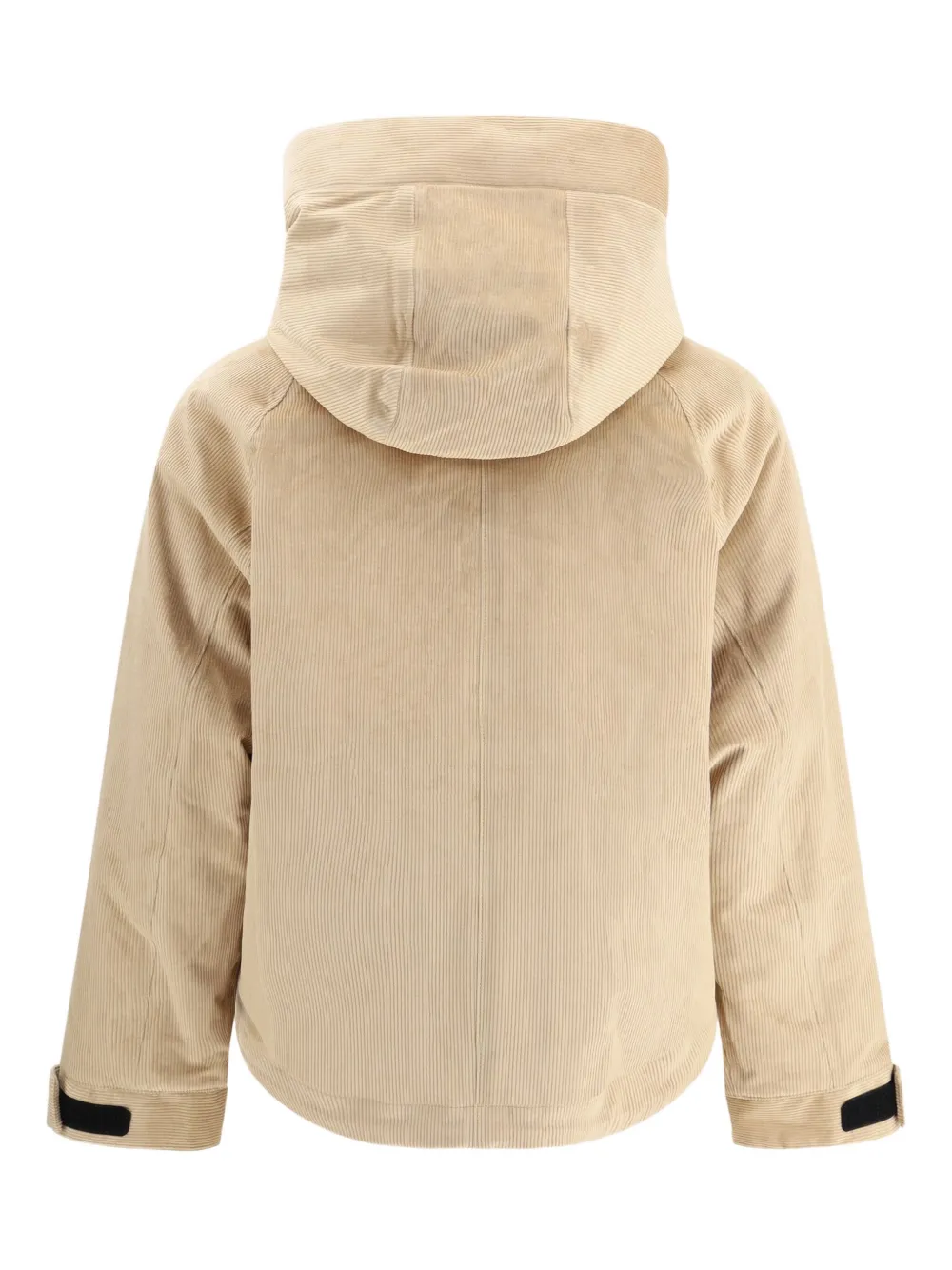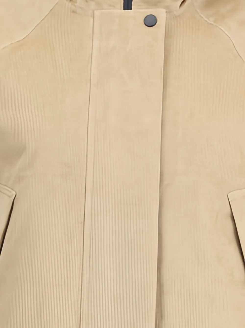 Бежевый вельветовый фактурный капюшон, вырез горловины, застежка на кнопки, прорезные карманы, длинные рукава