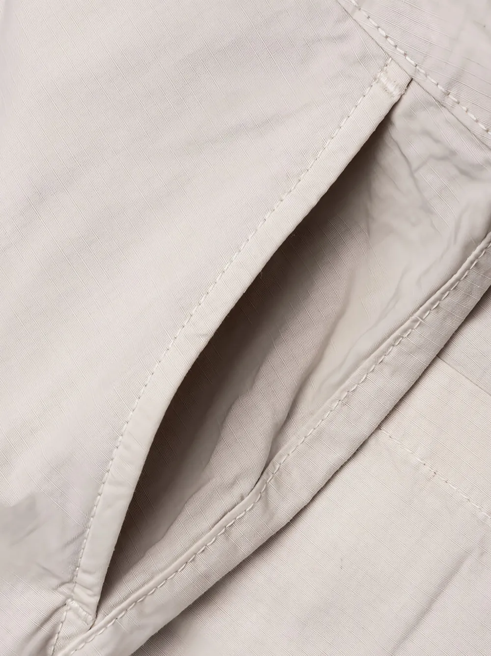 Бежевый, множество карманов, застежка на пуговицы, прямой подол, тональная отделка