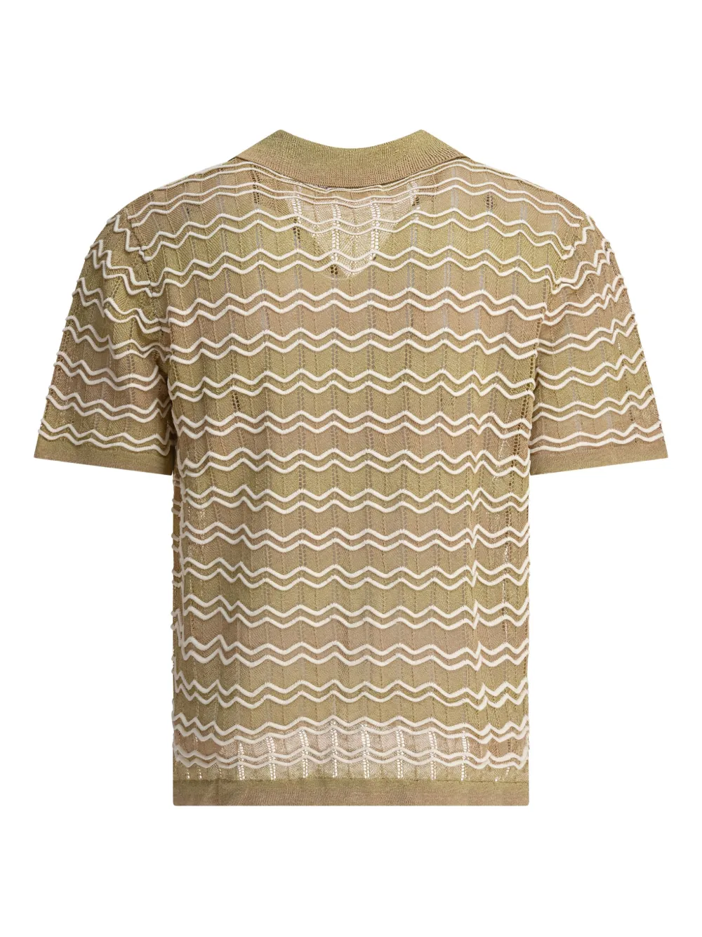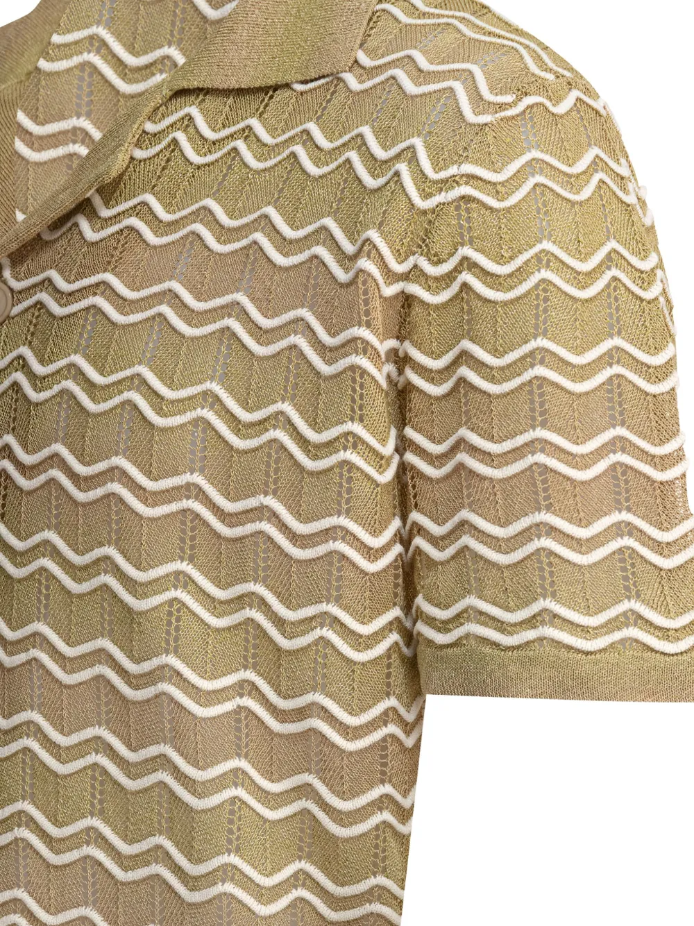 Бежевый волнистый узор, короткие рукава, застежка на пуговицы, льняная смесь