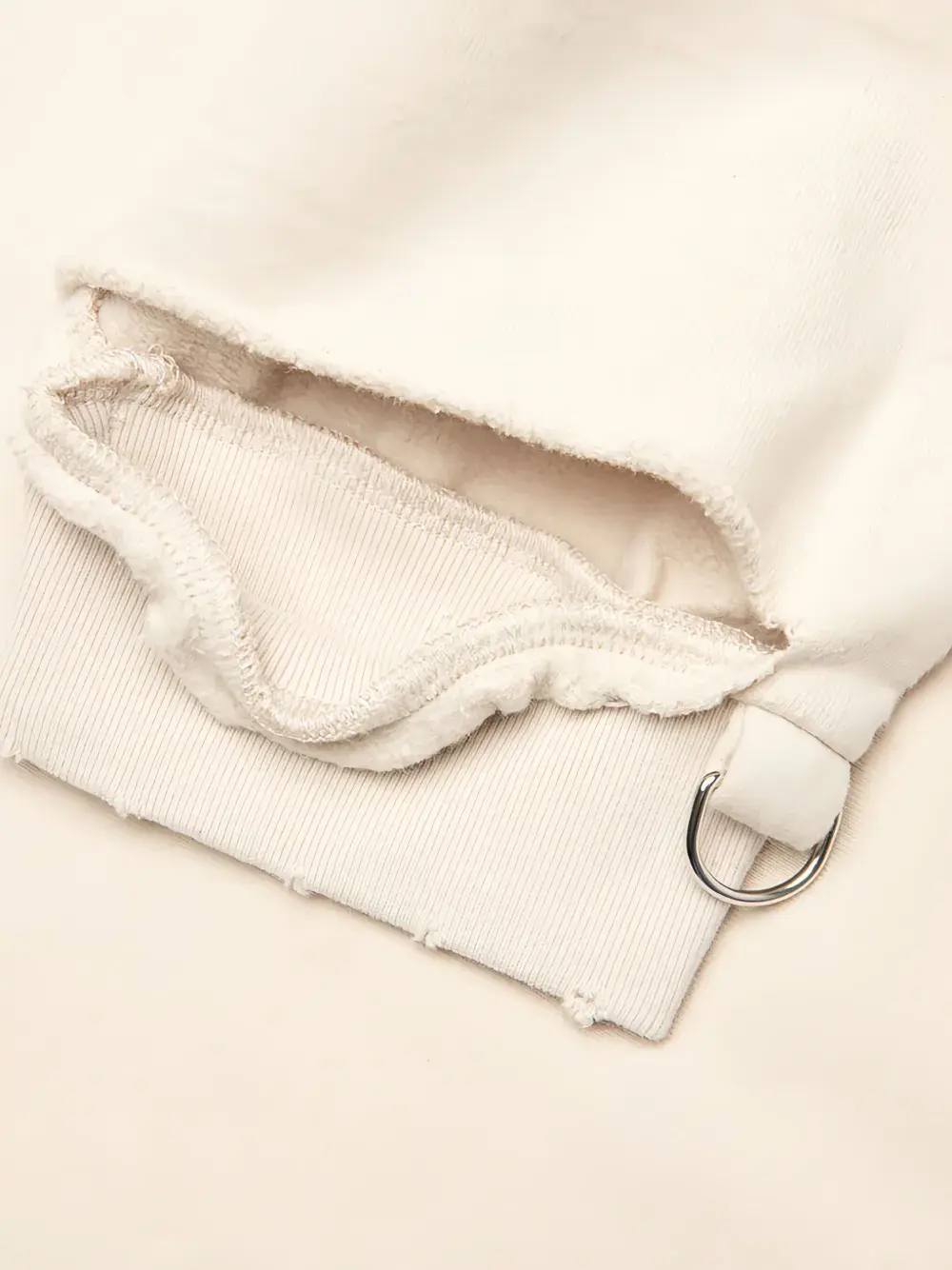 Бежевый, с потертостями, графическим принтом, застежкой на шнурке, капюшоном, деталью рукава