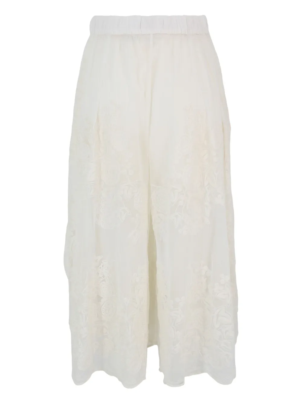 Бежевая цветочная вышивка, расклешенный подол, эластичный пояс, прозрачная ткань