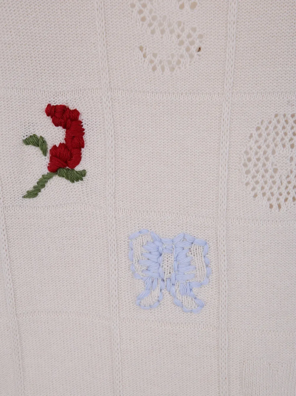 Вышивка в неярком цветочном стиле, вышивка в виде сердца, ажурный узор, вышивка в виде бабочки, вышивка в виде банта