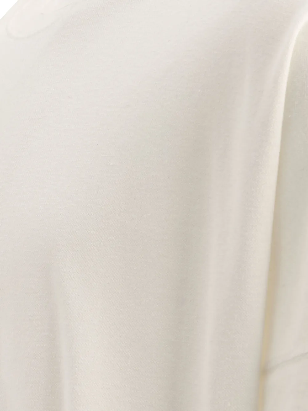 Текстура пике не совсем белого цвета с короткими рукавами и круглым вырезом, смесь хлопка и льна