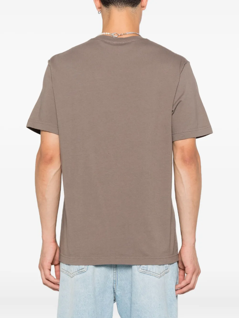Бежевый органический хлопок с круглым вырезом и короткими рукавами, цветочный принт