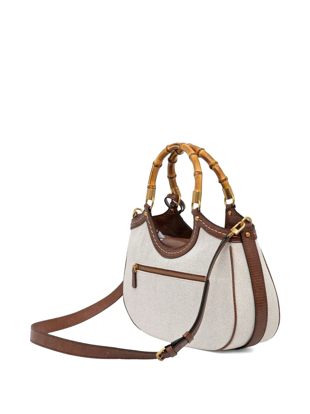 Верхние ручки из бамбука бежевого цвета, кожаная отделка, карман на молнии. Изделие поставляется в комплекте с защитным пылезащитным мешком.