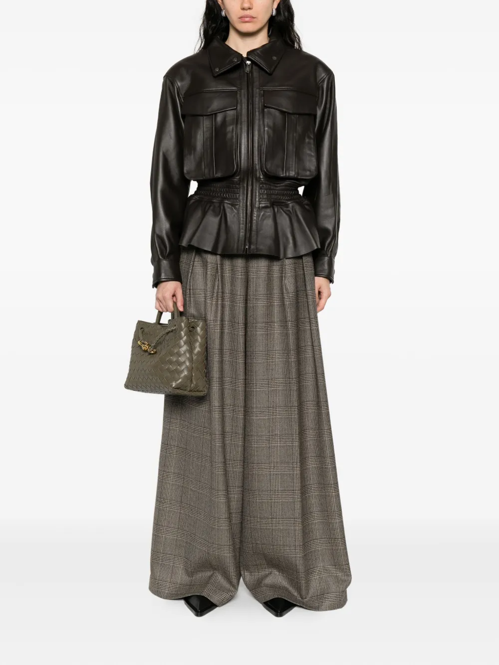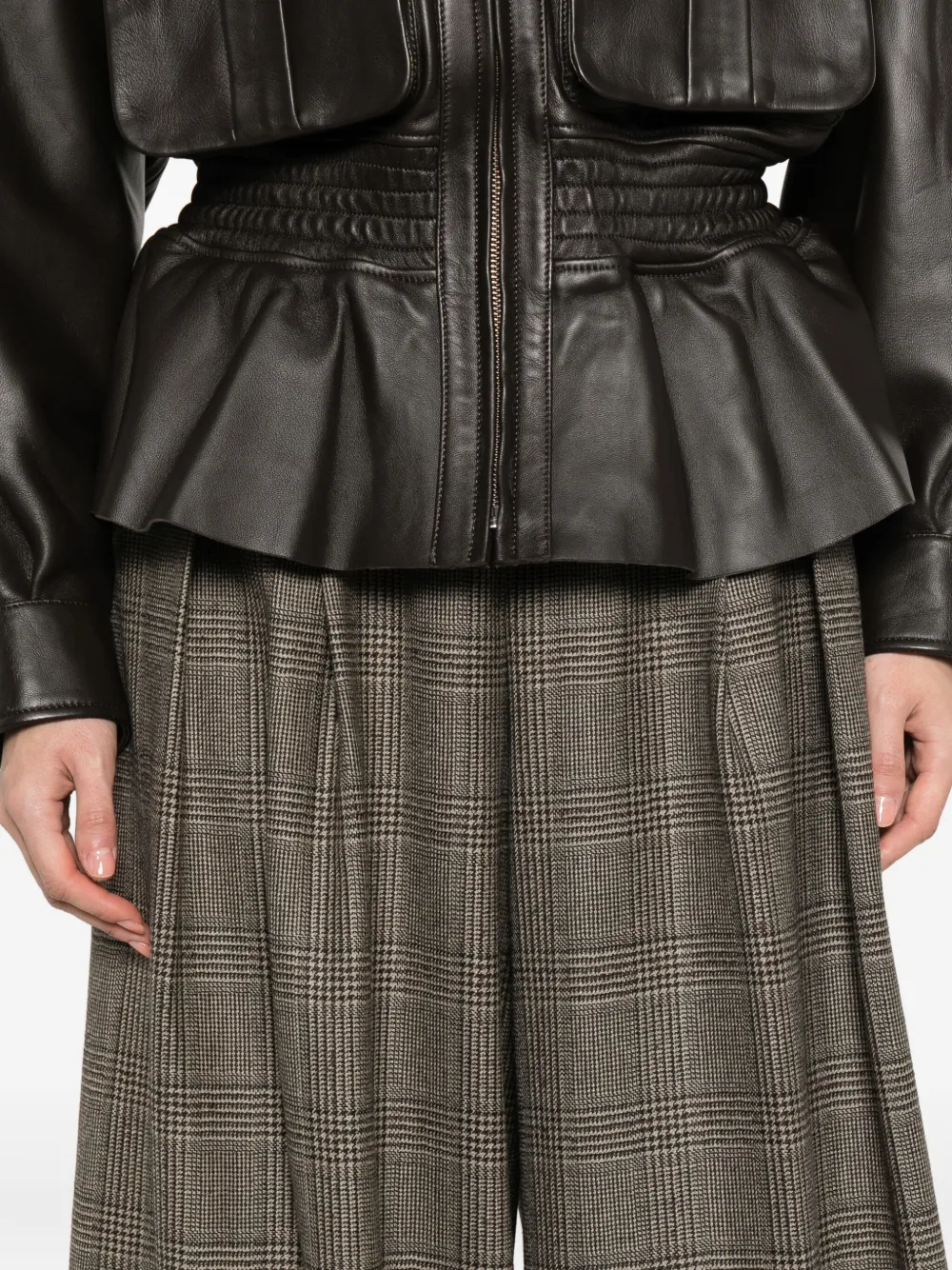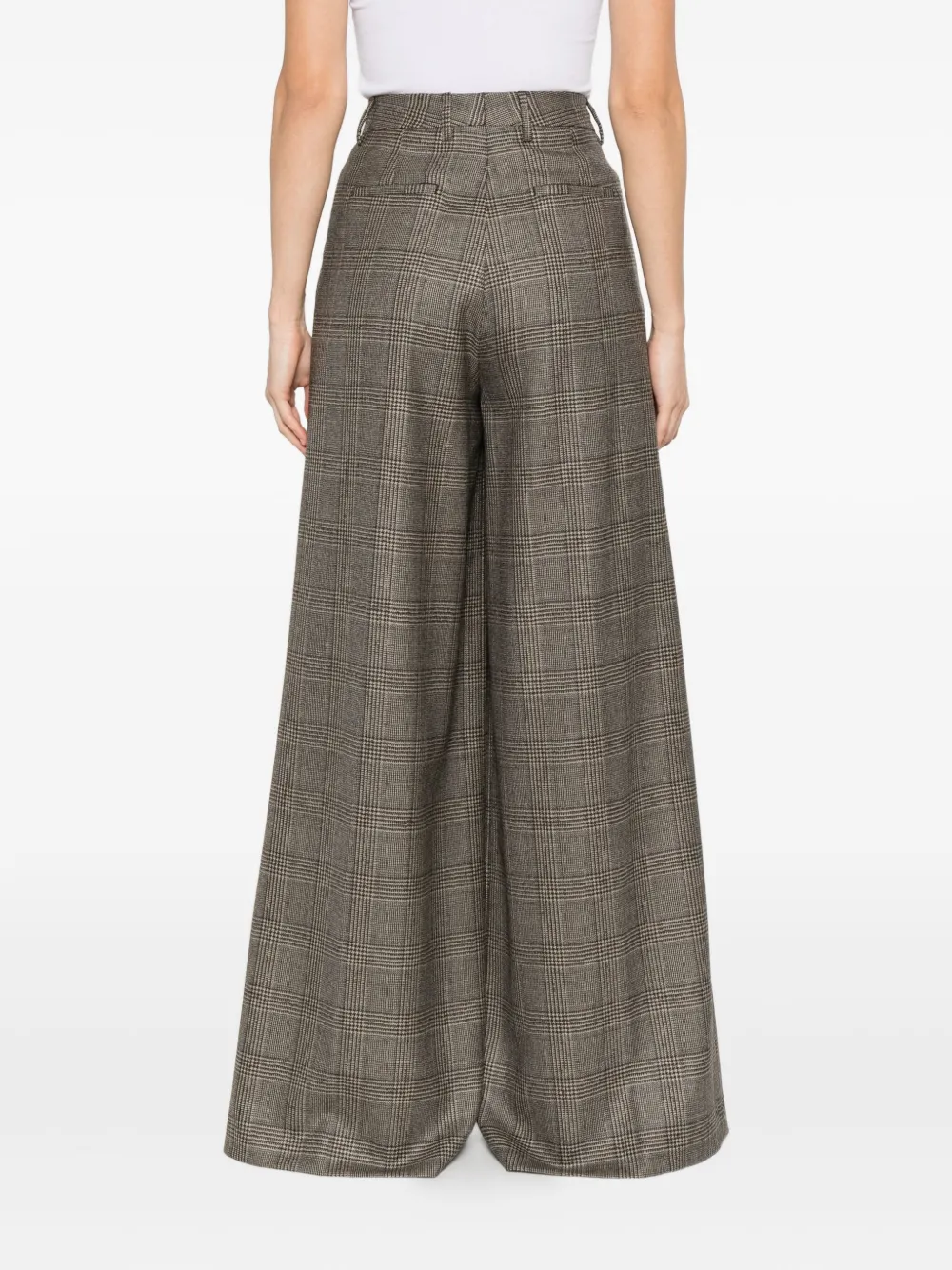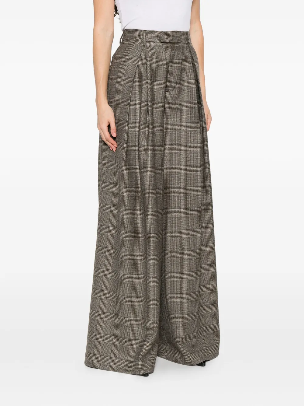 Бежевый клетчатый узор, складки, высокая талия, шерсть