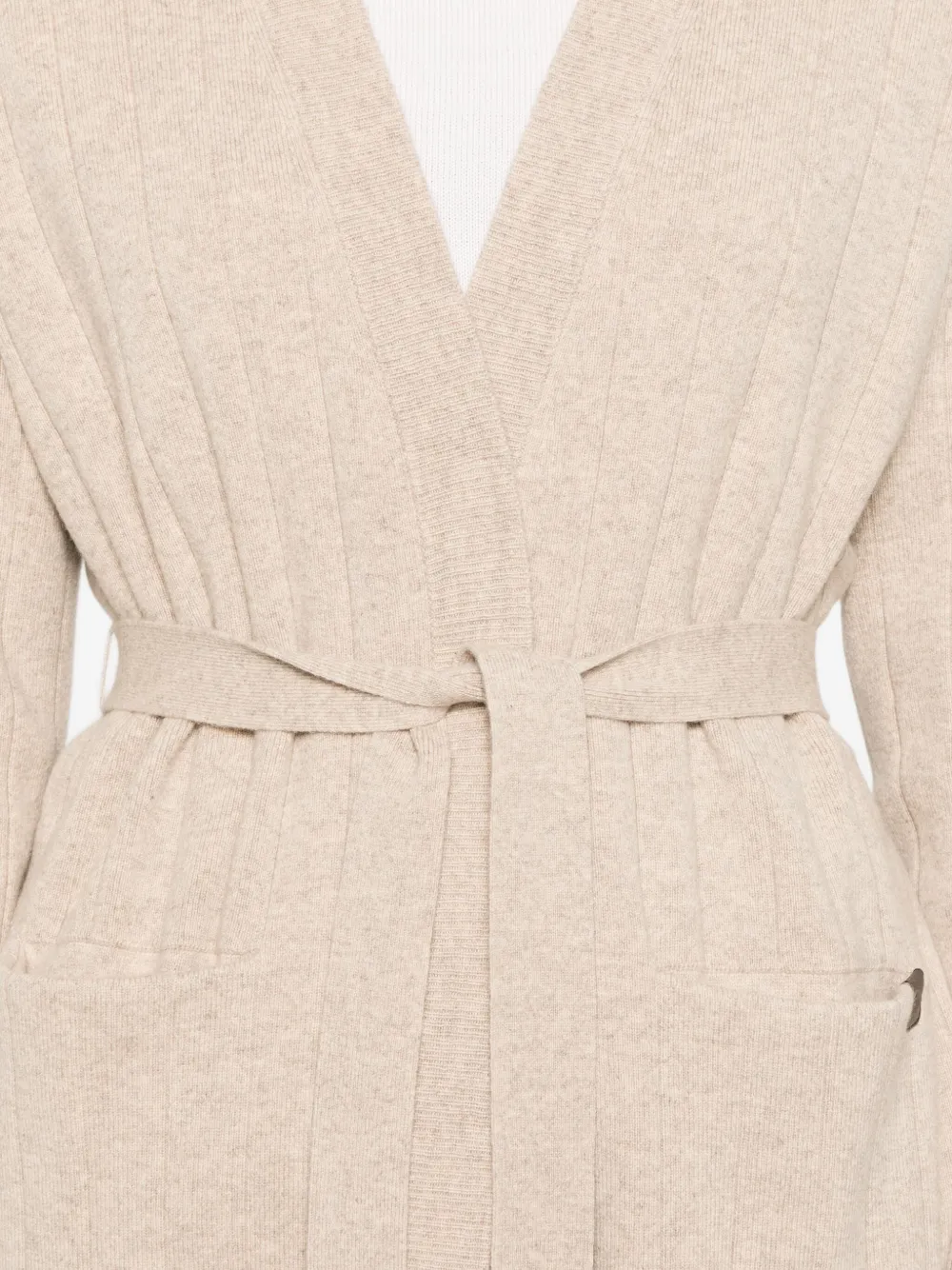 Кардиган в рубчик с поясом MAX MARA, нейтральный