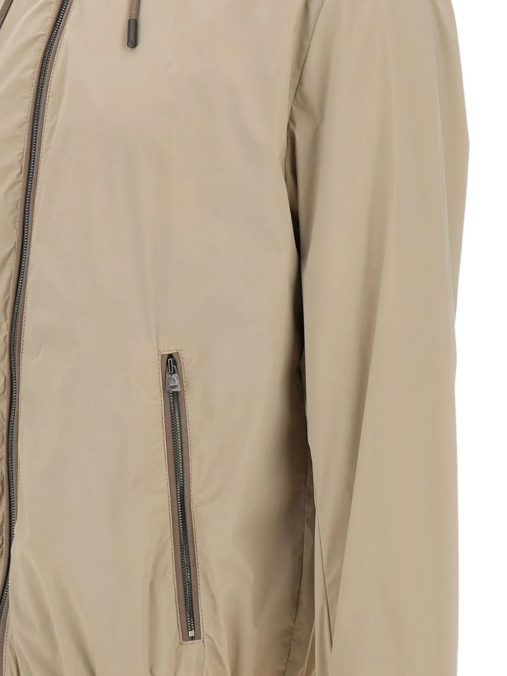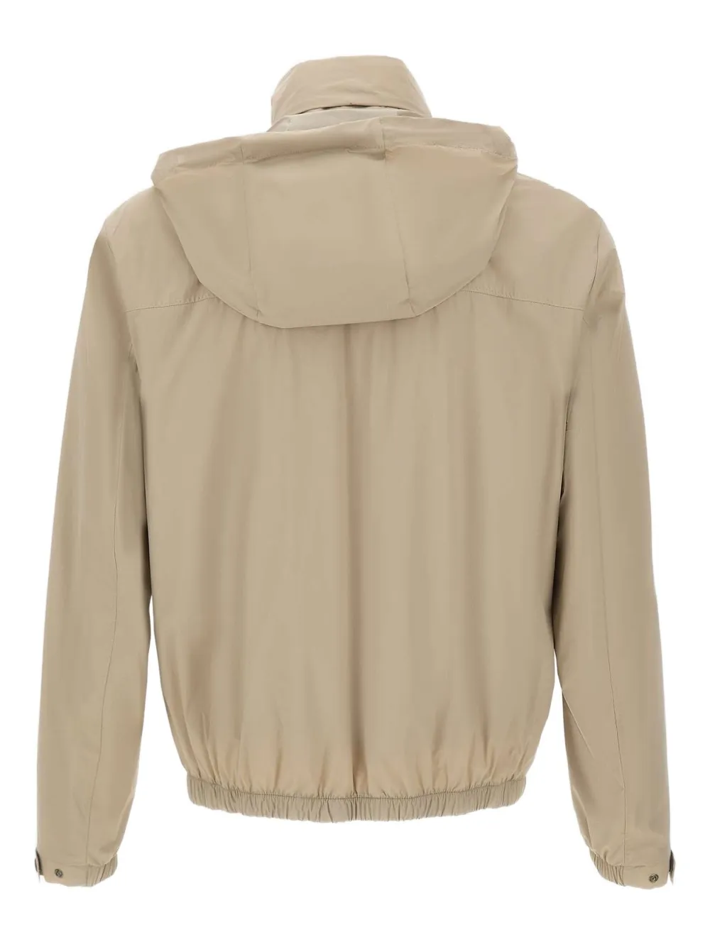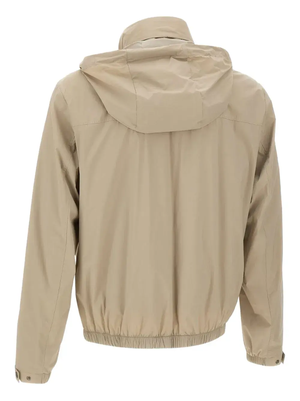 Бежевый, застежка-молния, капюшон, завязки, боковые карманы, эластичный подол, регулируемые манжеты