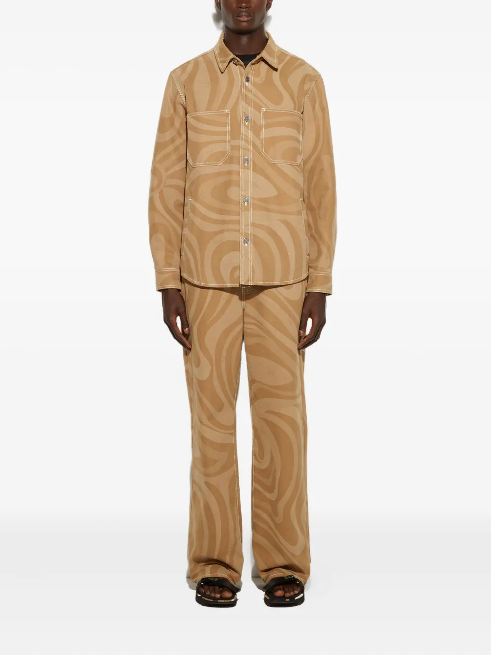 Брюки прямого кроя с принтом «мармо» PUCCI, нейтральный