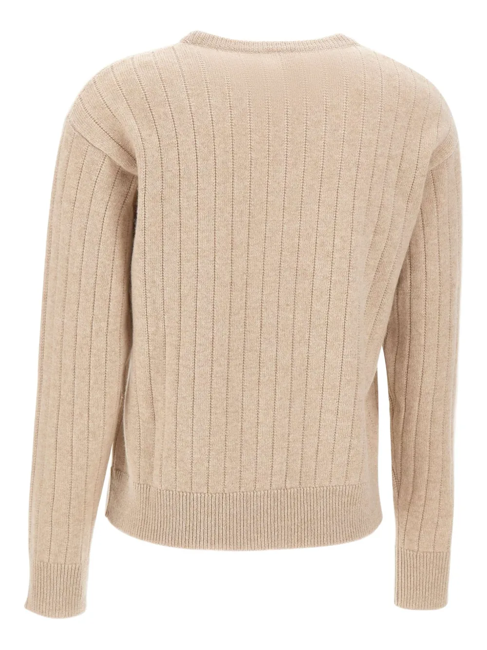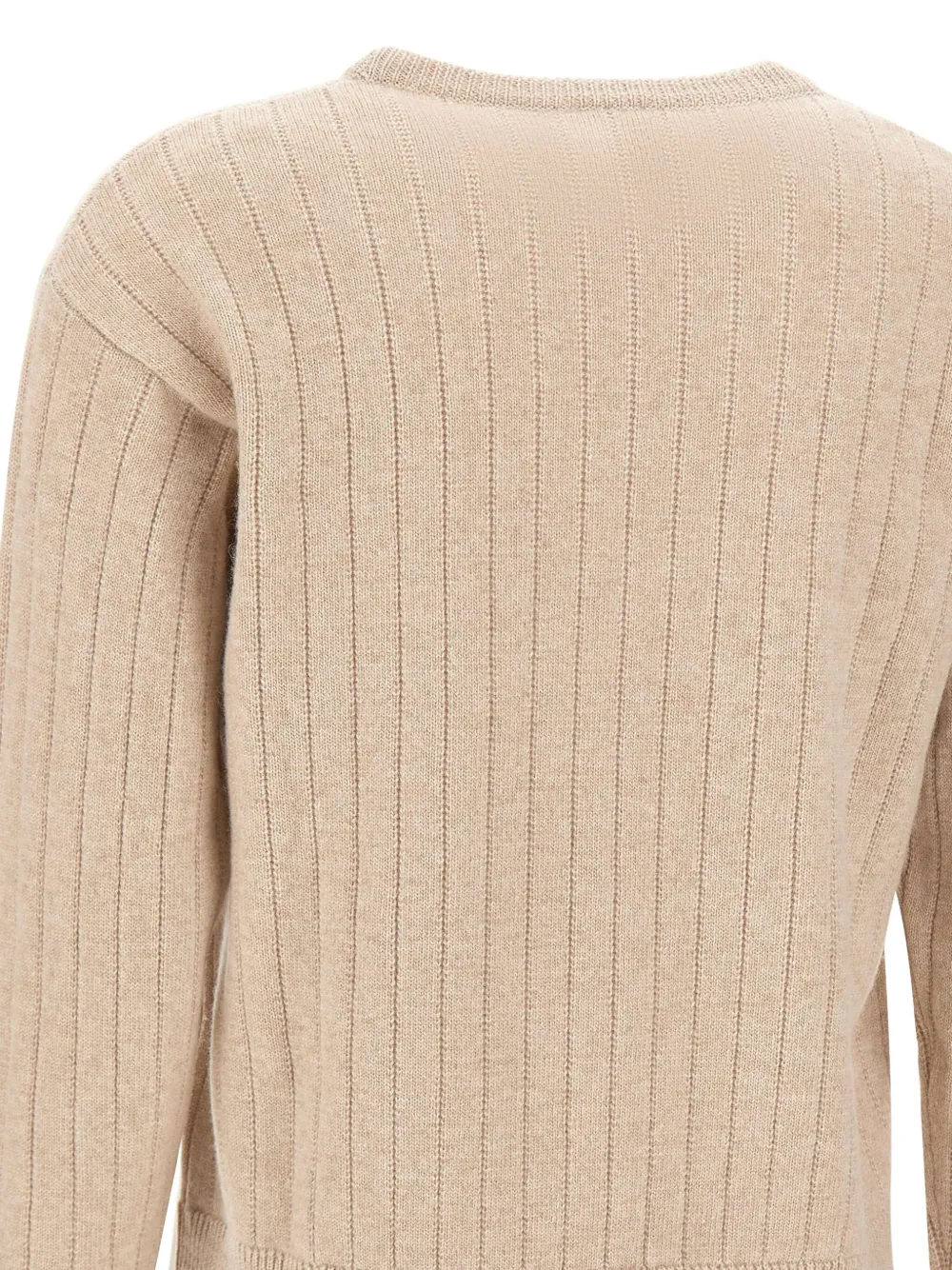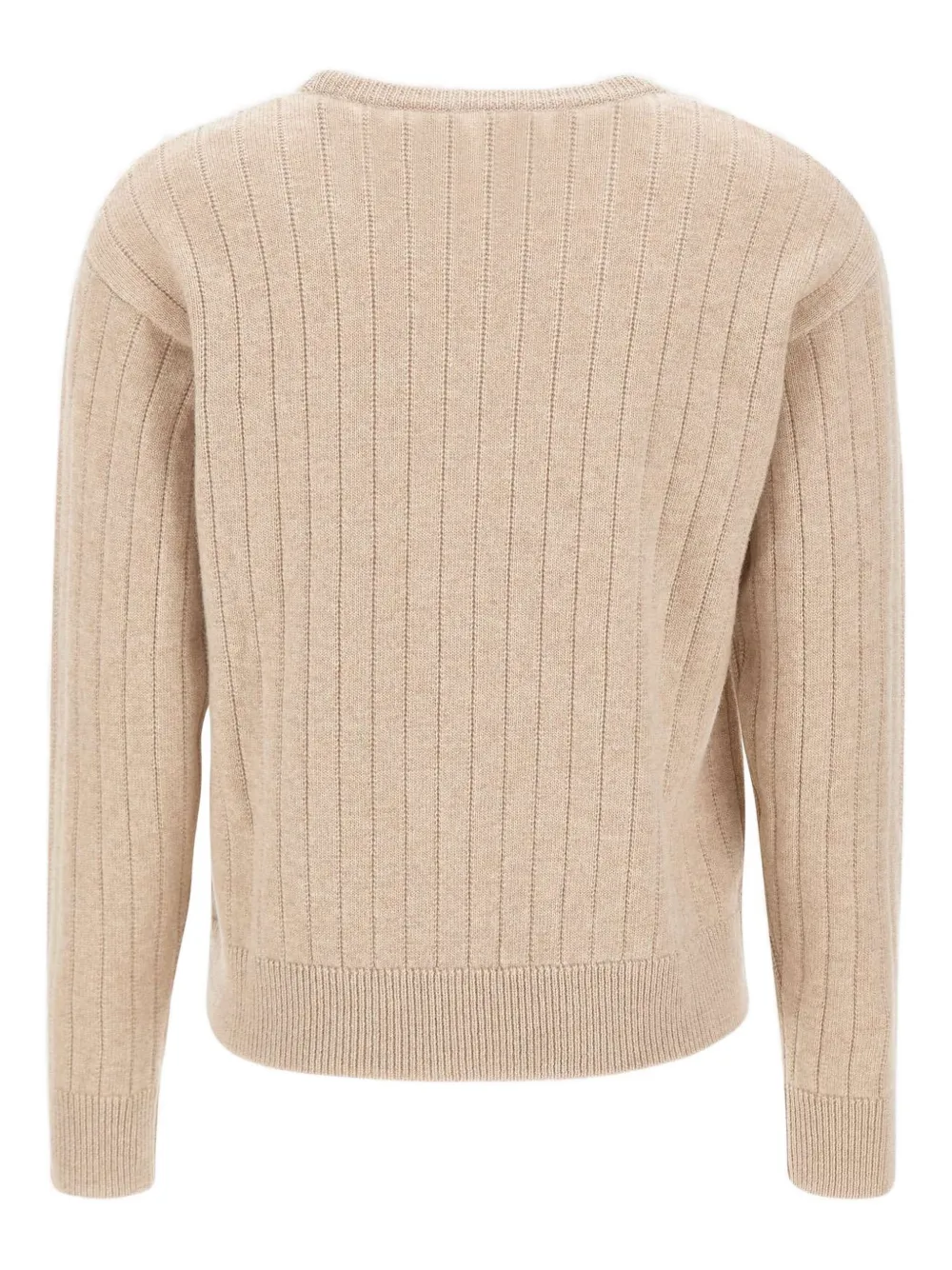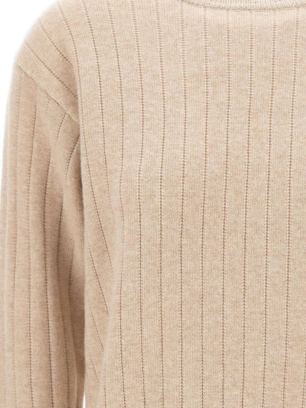 Бежевый ребристая фактура, круглый вырез, длинные рукава, смесь шерсти и кашемира, ребристая кромка