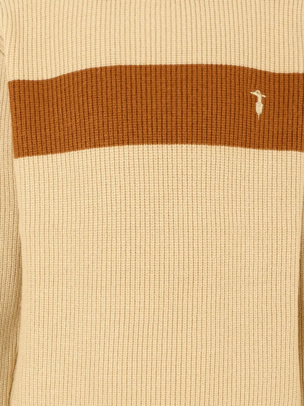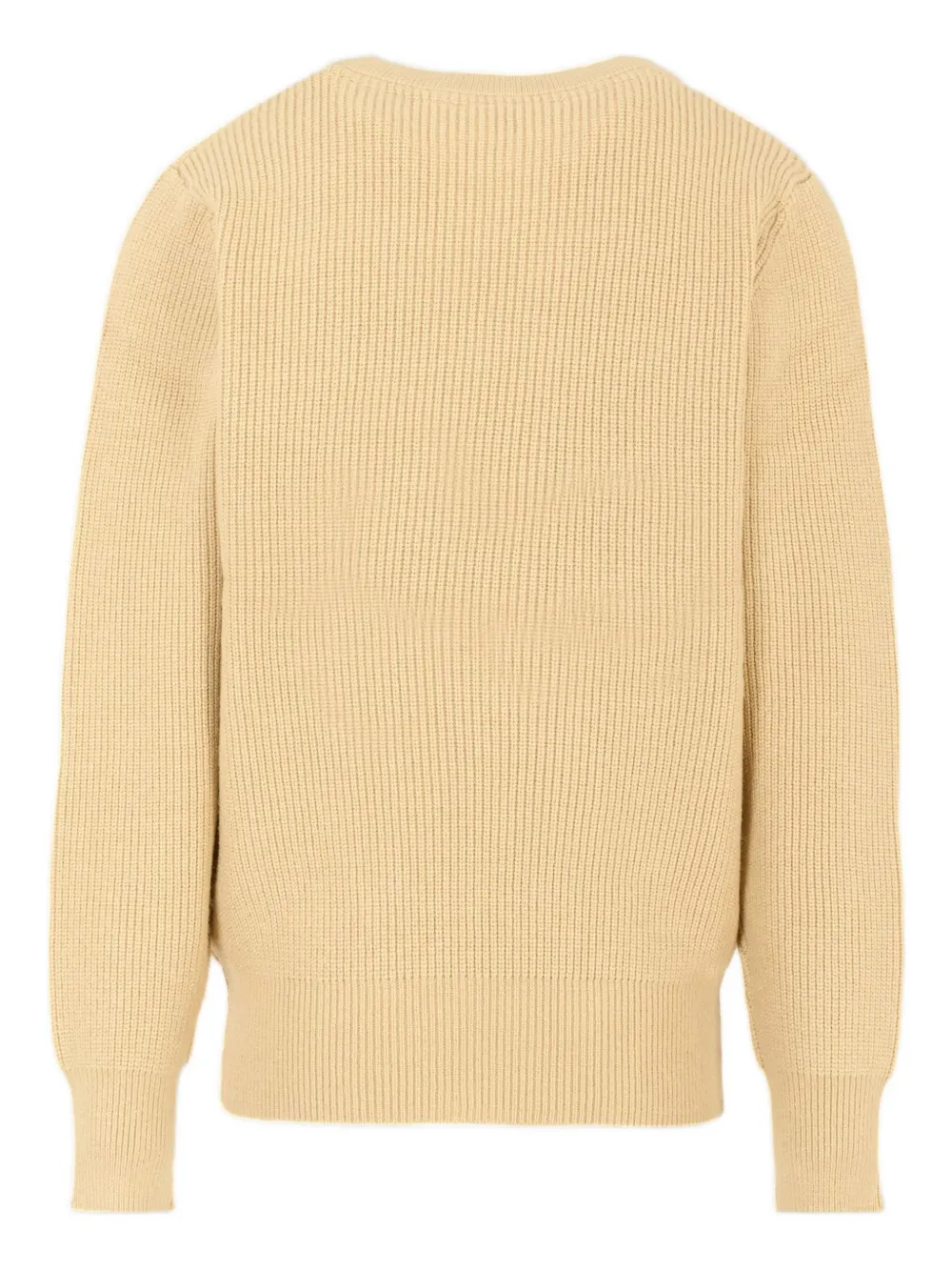 Бежевый ребристая вязка с вышитым логотипом, круглый вырез горловины, длинные рукава