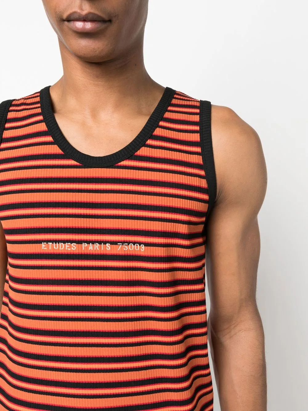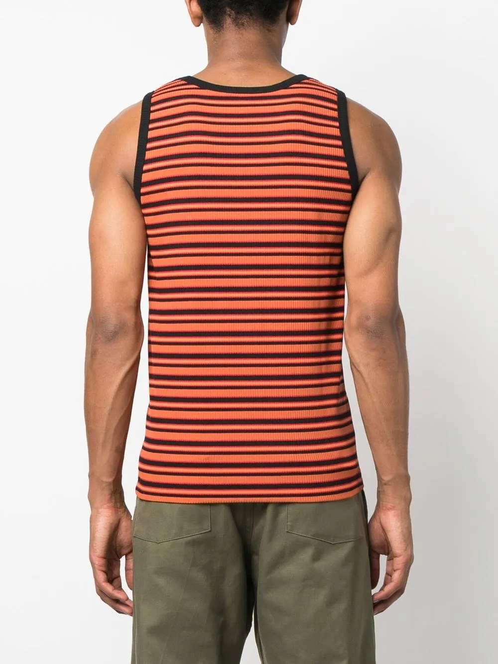 Оранжевый, трикотаж в рубчик, вышитый логотип спереди, узор Artist Stripe, круглый вырез и без рукавов.