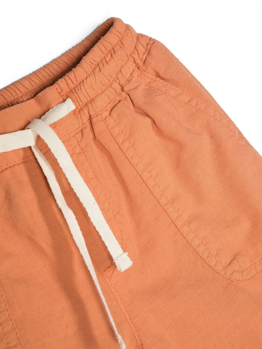 Оранжевый, хлопок, кулиска на талии, два накладных кармана спереди, два накладных кармана сзади и бирка с логотипом.