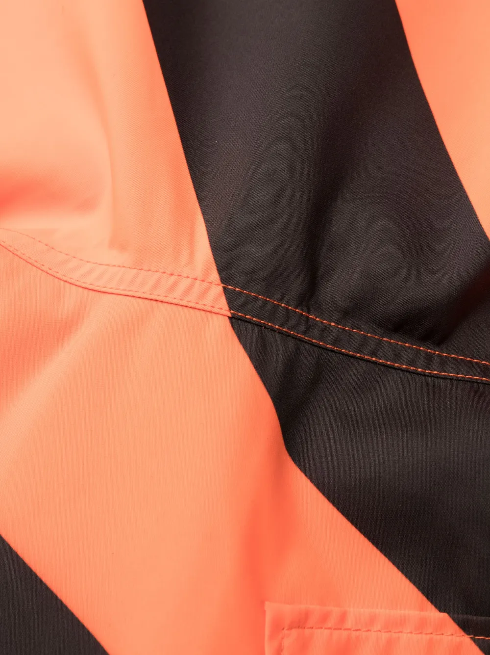 Оранжевый, черный, эластичный пояс, два прорезных кармана по бокам, накладной карман сзади, узор в диагональную полоску и длина до бедер. Пожалуйста, примеряйте купальники и пляжные шорты только поверх собственного белья.
