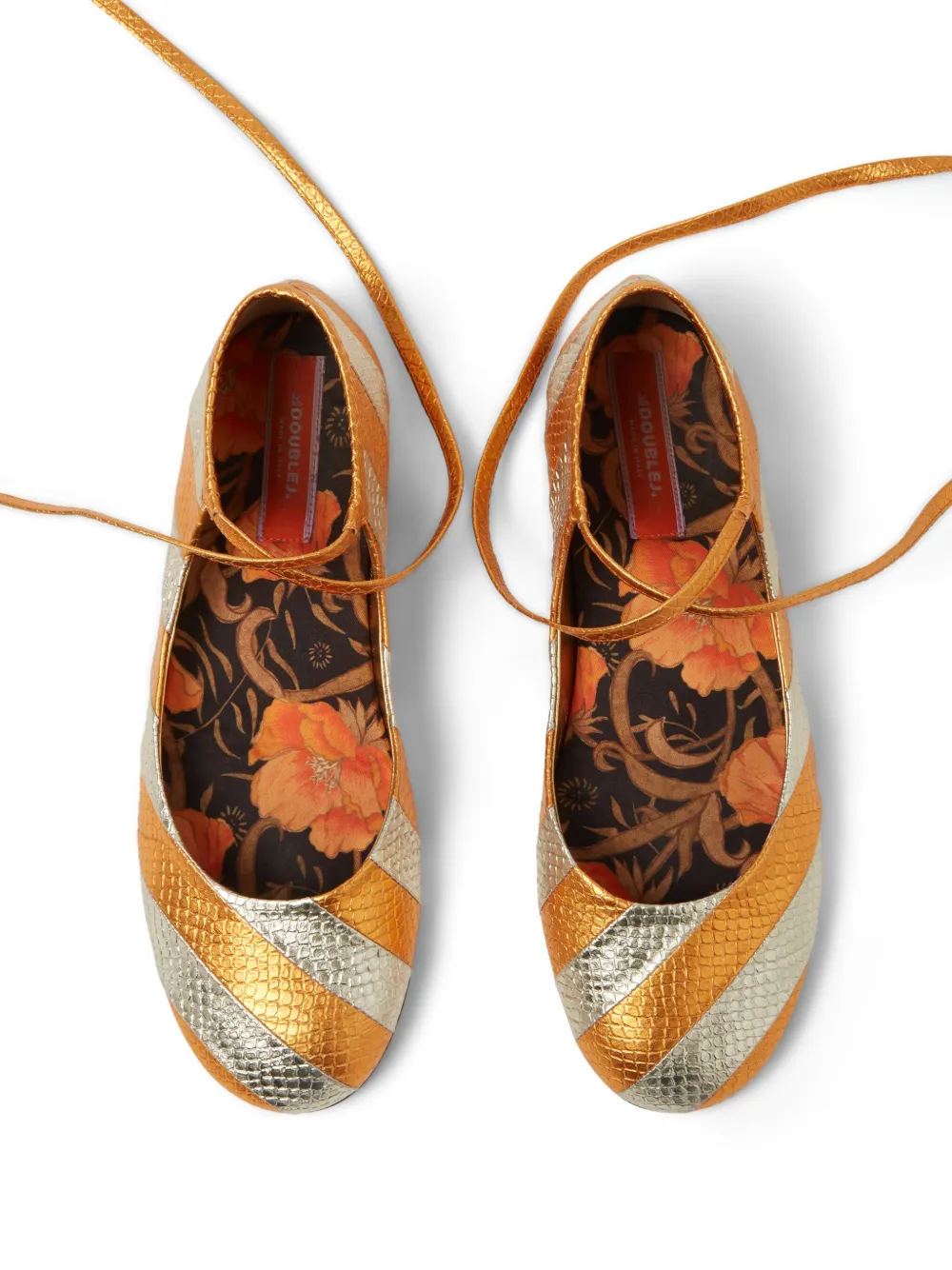 Балетки в полоску с эффектом металлик La DoubleJ, оранжевый