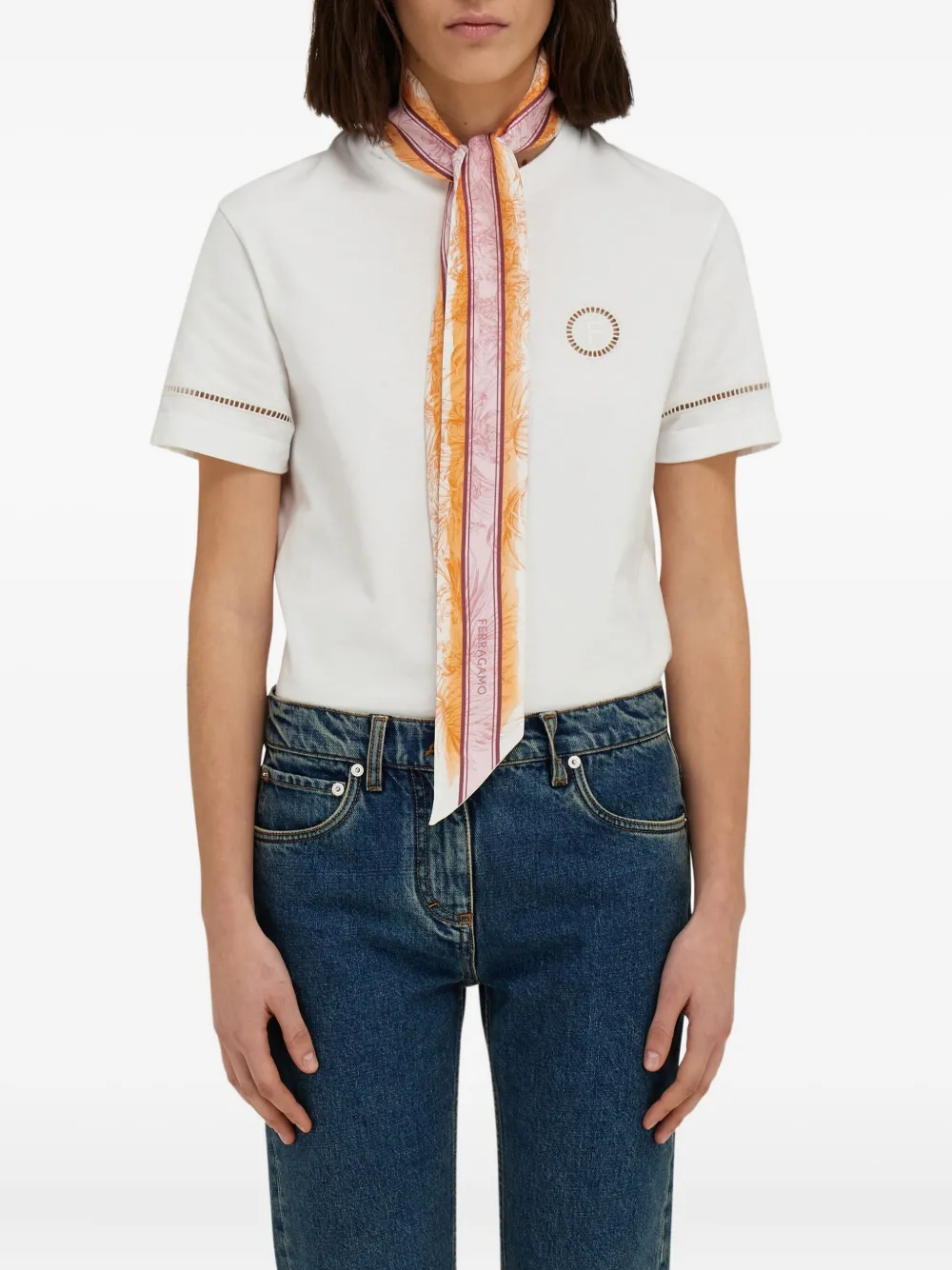 Шелковый шарф с принтом Gravure Ferragamo, оранжевый 30 385₽