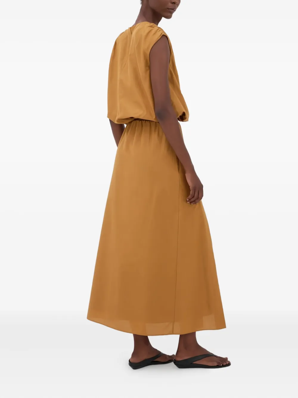 Охристый, с боковыми разрезами, А-силуэт, высокая талия