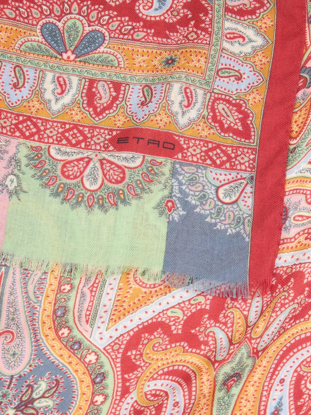 Красный узор пейсли с бахромой по краям, многоцветный дизайн, детальная кайма