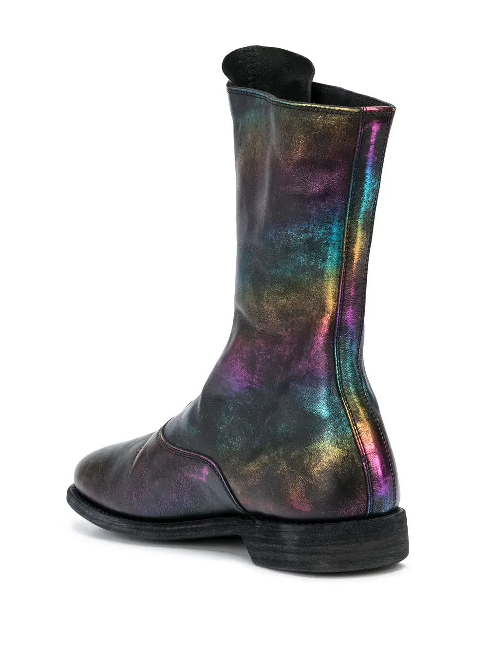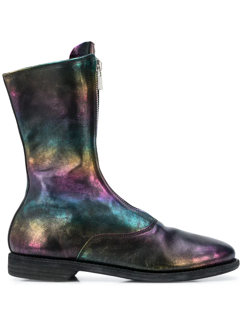 Ботинки с эффектом металлик от Guidi. Закругленный носок, застежка на молнии спереди и плоский каблук.