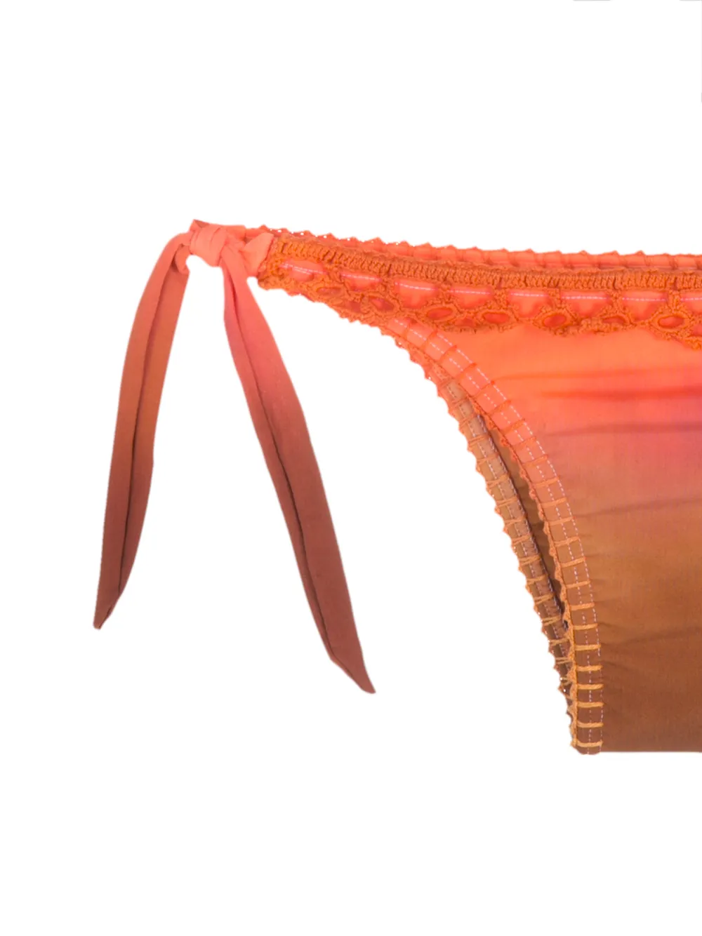 Бикини Tie Dye с вышивкой от Amir Slama. V-образная горловина, застежка на завязке сзади, принт тай-дай, завязки по бокам и подкладка. Цвет: оранжевый. Размер этой модели соответствует стандарту.