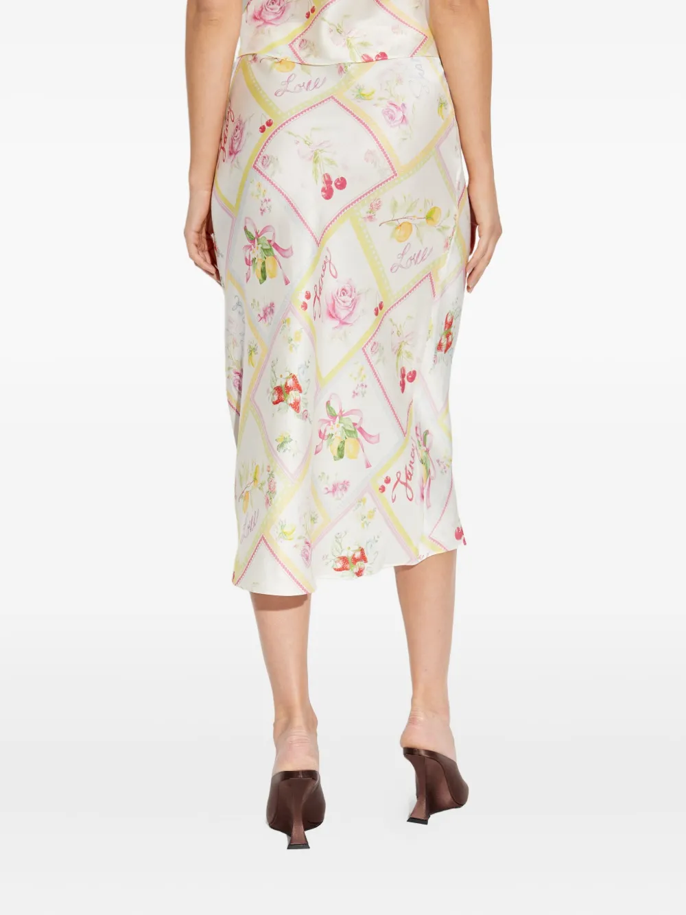 Юбка с косым кроем и фруктовым принтом LoveShackFancy, мультиколор