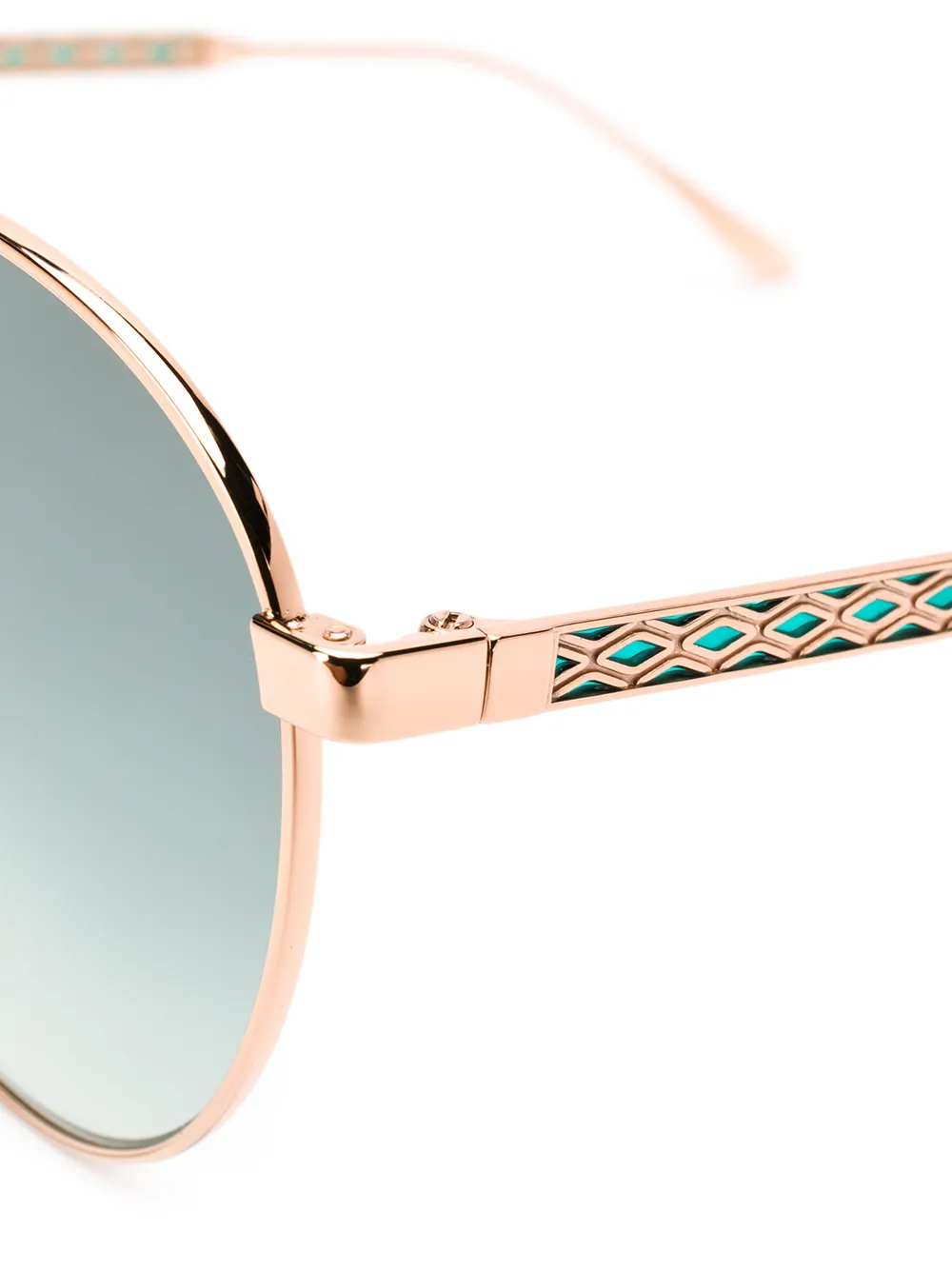 Очки-пилоты от Jimmy Choo Eyewear. Градиентные линзы и прямые дужки с изогнутыми концами. Прилагается защитный чехол.