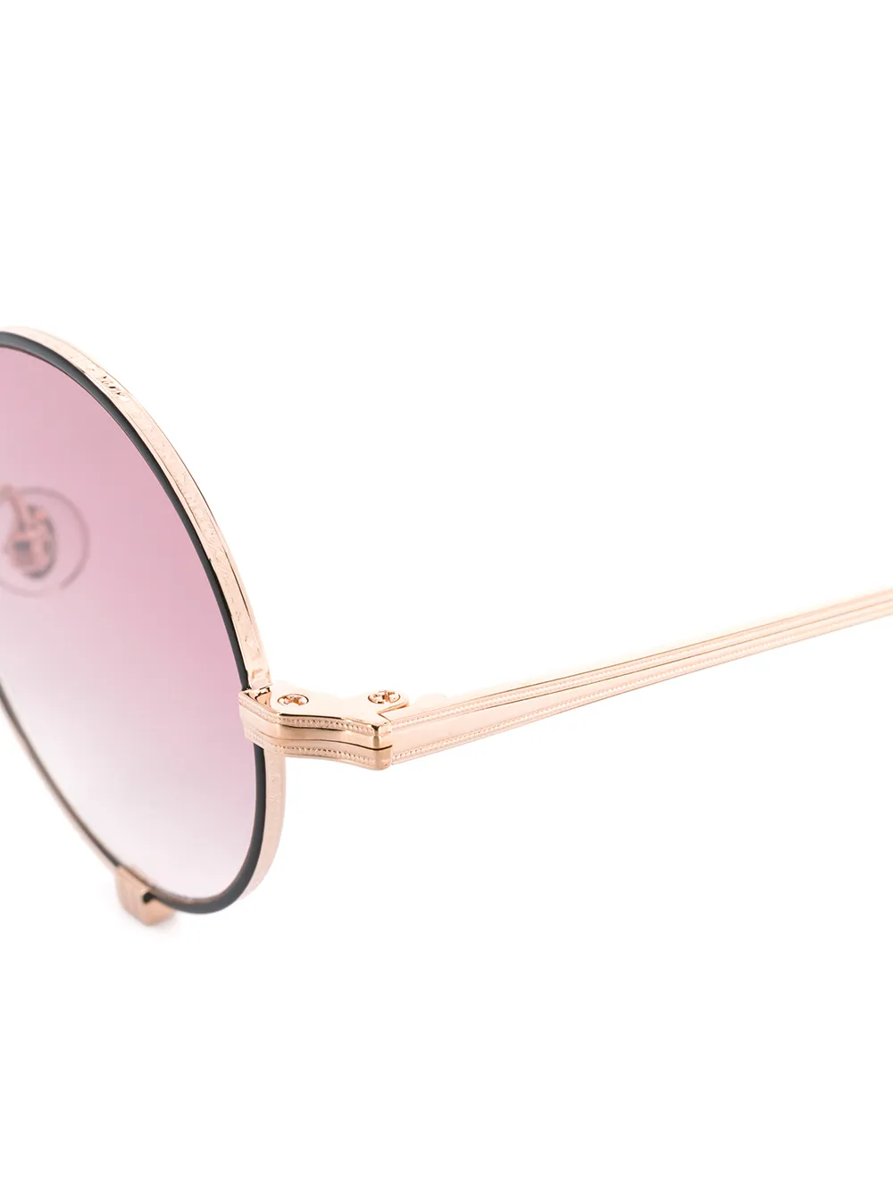 Солнцезащитные очки в круглой оправе от Matsuda. Оправа круглой формы, градиентные линзы, прямые дужки с остро изогнутыми концами и 100% защита от ультрафиолета А и В.