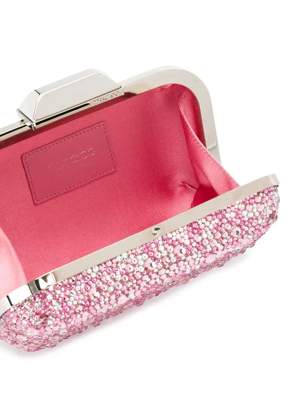 Клатч Cloud от Jimmy Choo (Джимми Чу). Главный внутренний отдел, внутренняя вставка с логотипом, цельная подкладка, украшение из кристаллов и серебристая фурнитура.