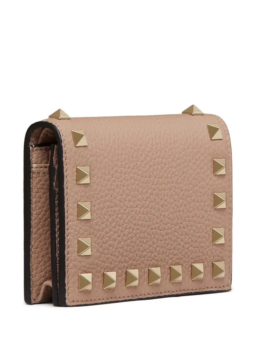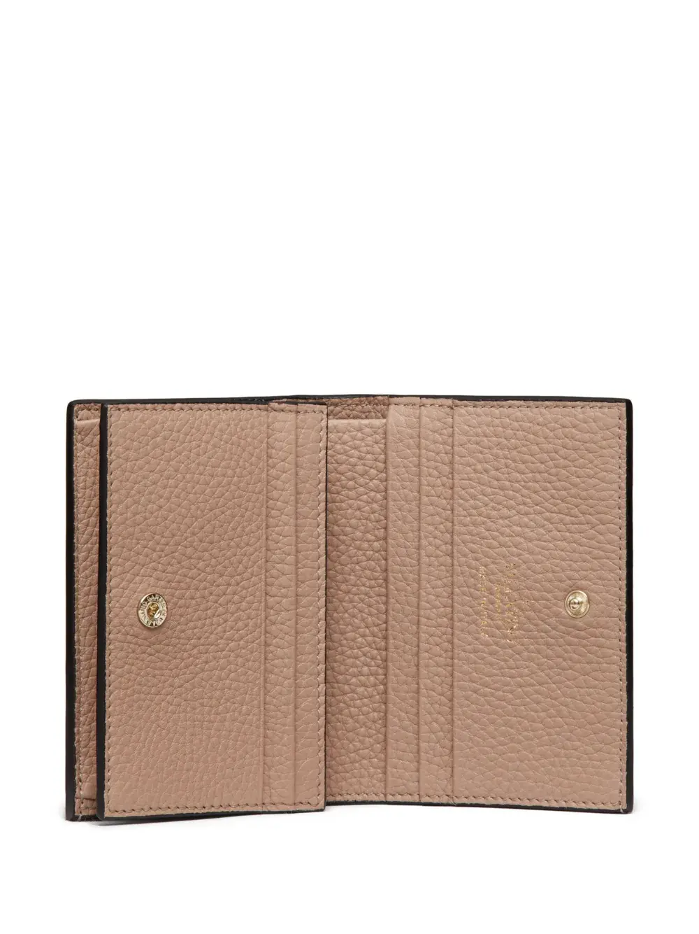 Коллекция Valentino осень-зима 2019 объединила в себе лучшие традиции итальянского качества и экспериментальный подход к сочетанию цвета и формы. Бренд представляет утонченные модели, которые станут идеальным дополнением к гардеробу современной женщины. Среди них бежево-розовый кожаный кошелек Rockstud от Valentino Garavani. Откидной верх с застежкой-защелкой, золотистые заклепки Rockstud, несколько отделений для карт и отделение для купюр.