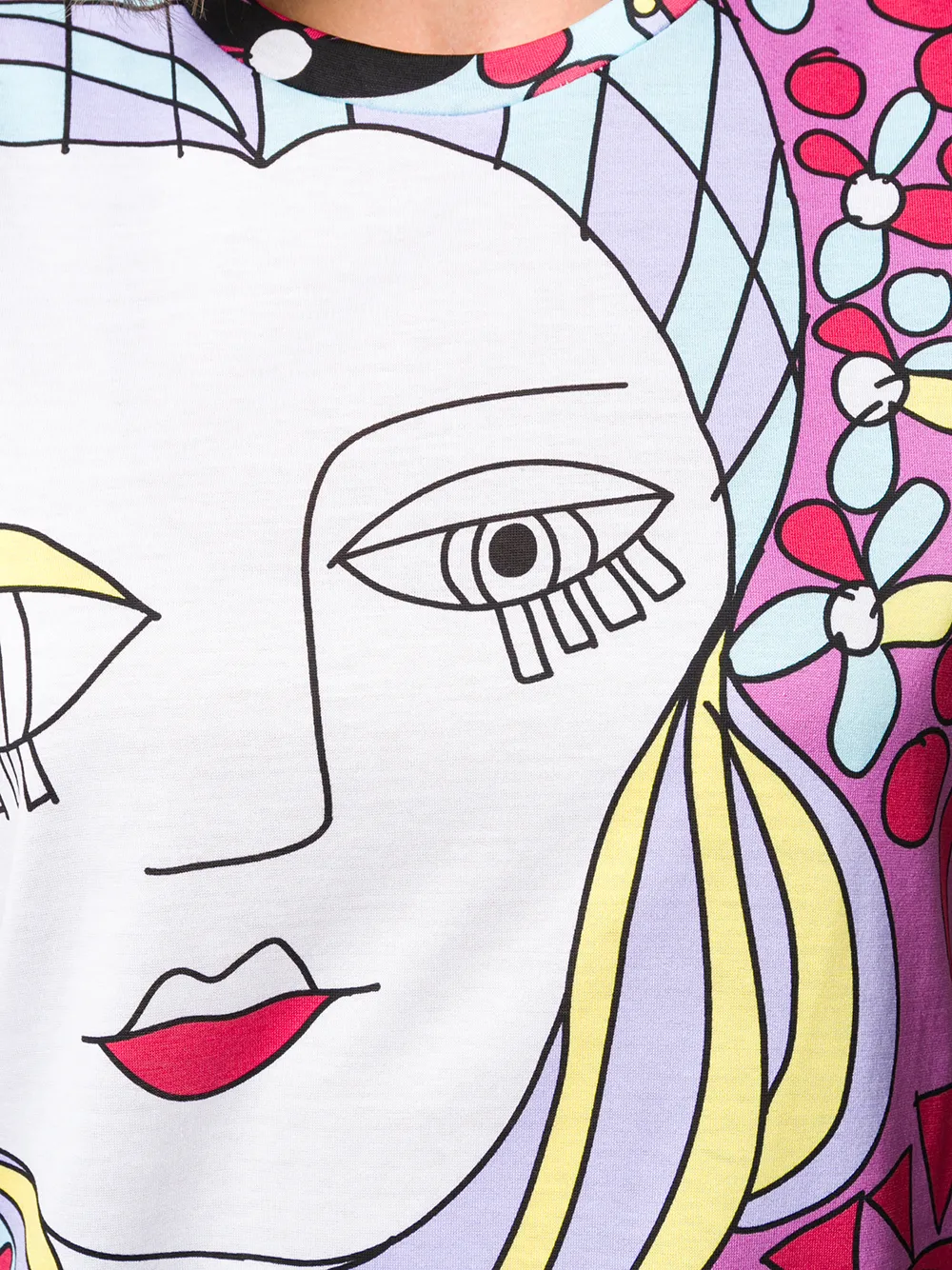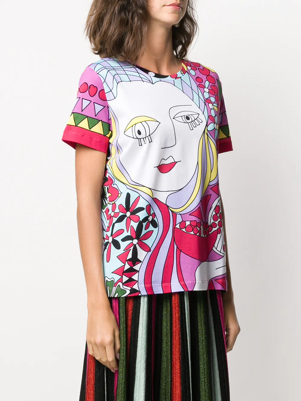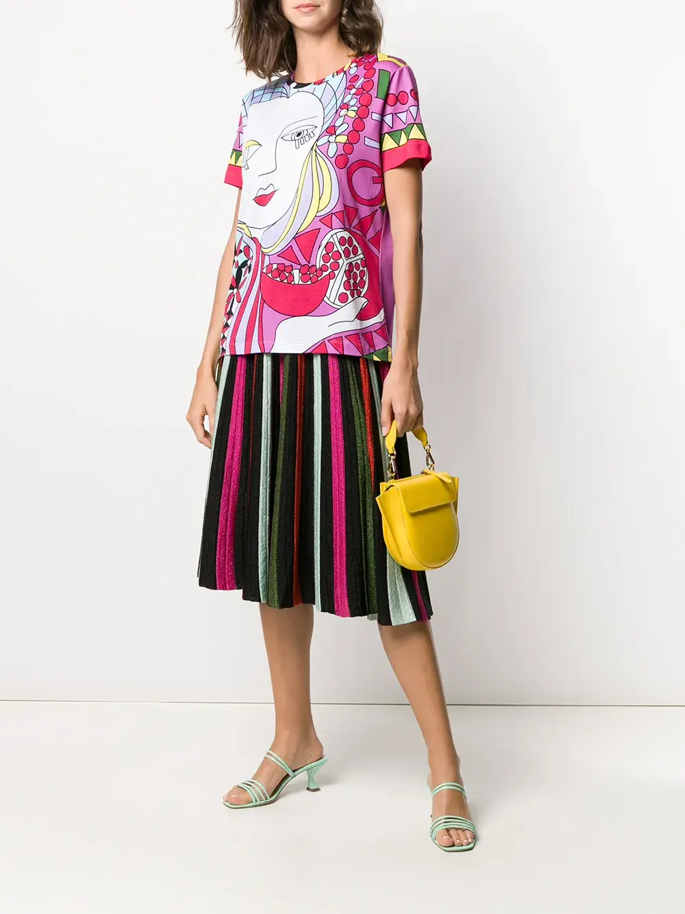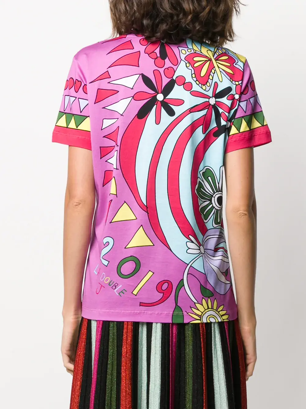 Футболка Total Goddess от La Doublej. Сплошной узор, круглый вырез под горло в рубчик, короткие рукава и прямой крой.