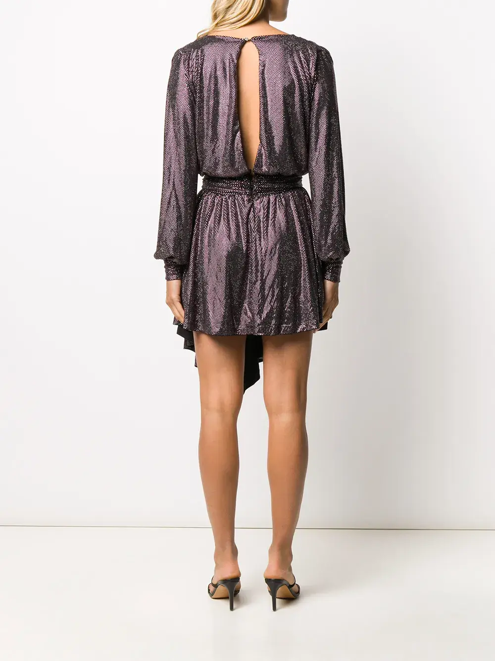 Платье с эффектом металлик от Philipp Plein (Филипп Плейн). Ремень на талии, асимметричный подол и длинные рукава. Цвет: розовый.