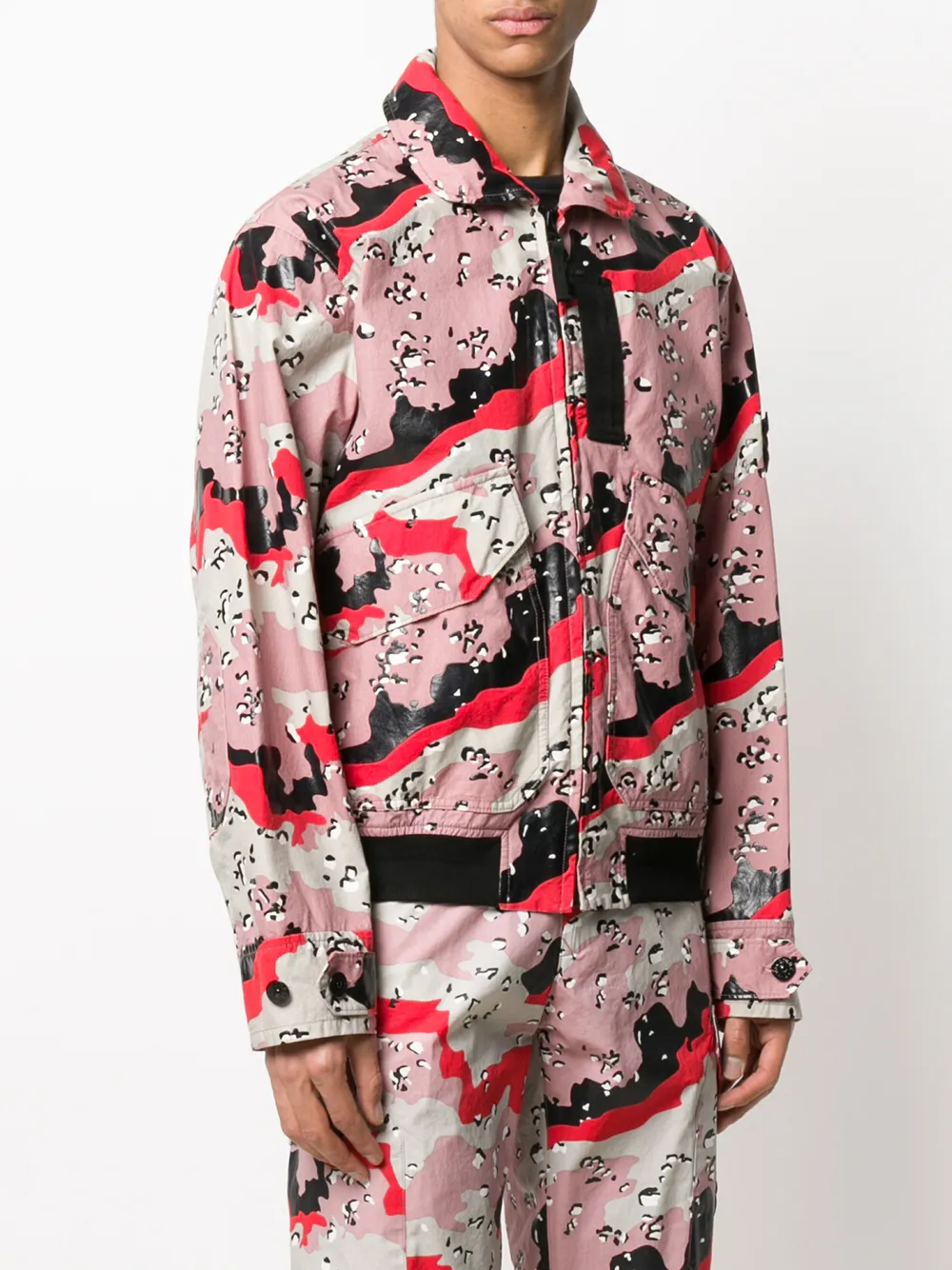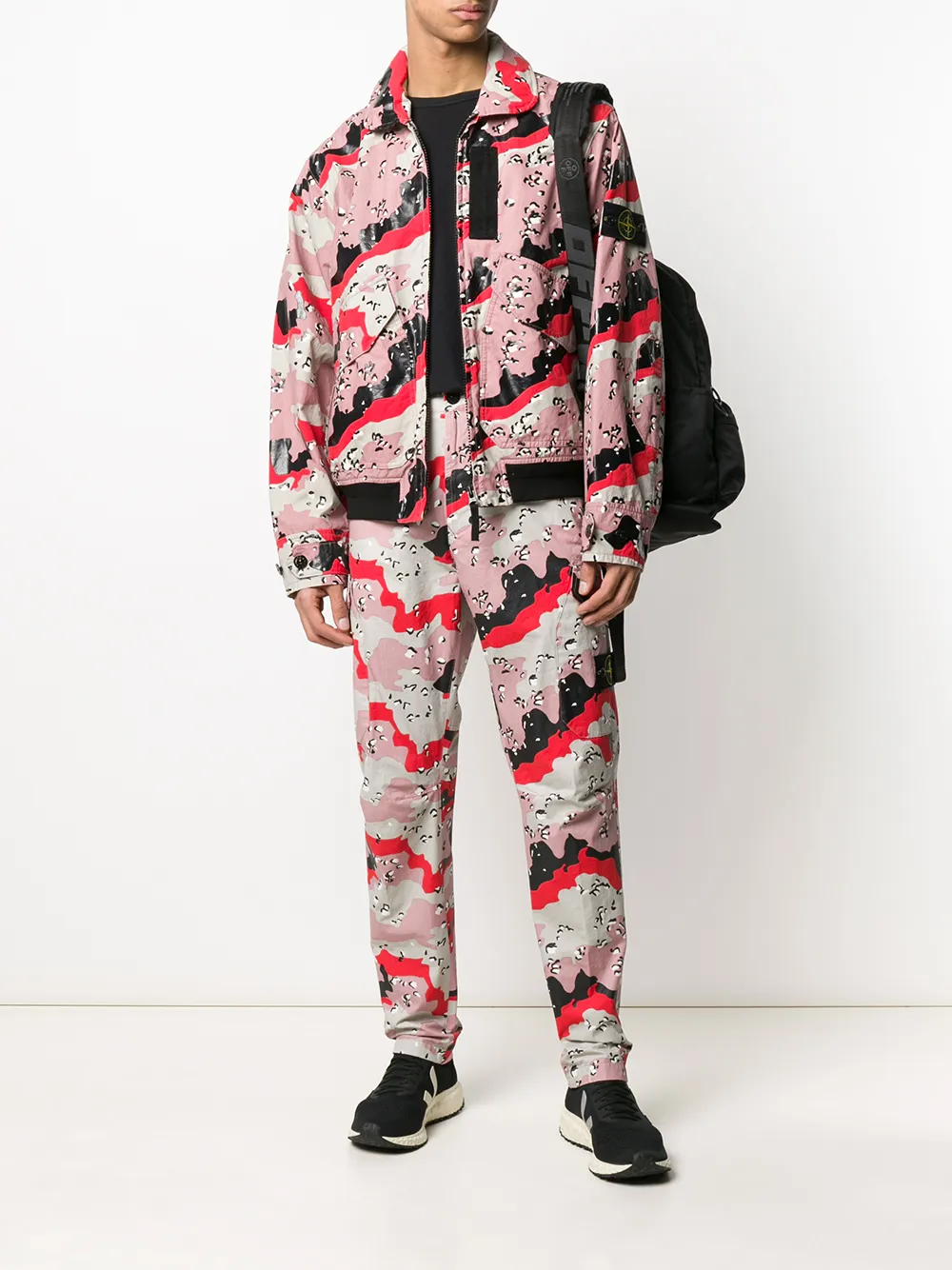 Куртка с абстрактным принтом от Stone Island (Стоун Айленд). Застежка на молнии спереди, длинные рукава, передние карманы с клапанами, ребристый подол и короткая длина.