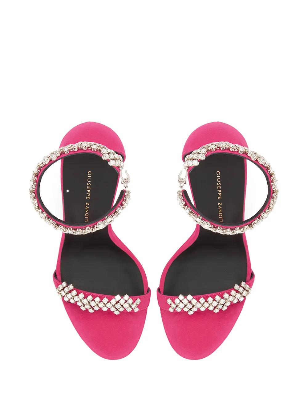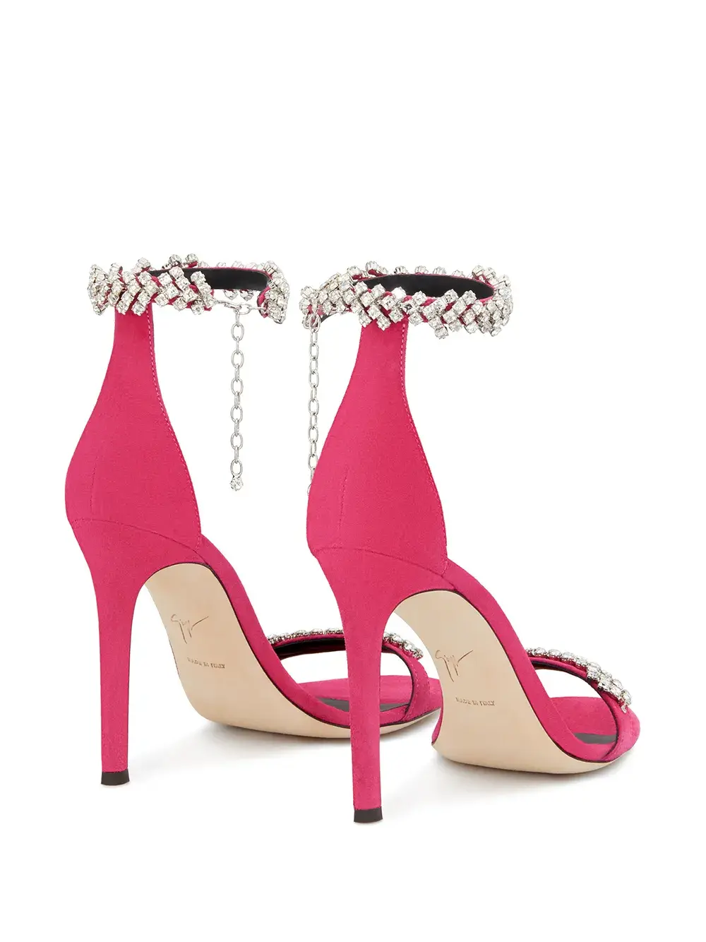 Босоножки Raissa от Giuseppe Zanotti (Джузеппе Занотти). Ремешок на пятке, фирменная стелька, ремешок на щиколотке, украшение из кристаллов и высокая шпилька. Цвет: розовый.