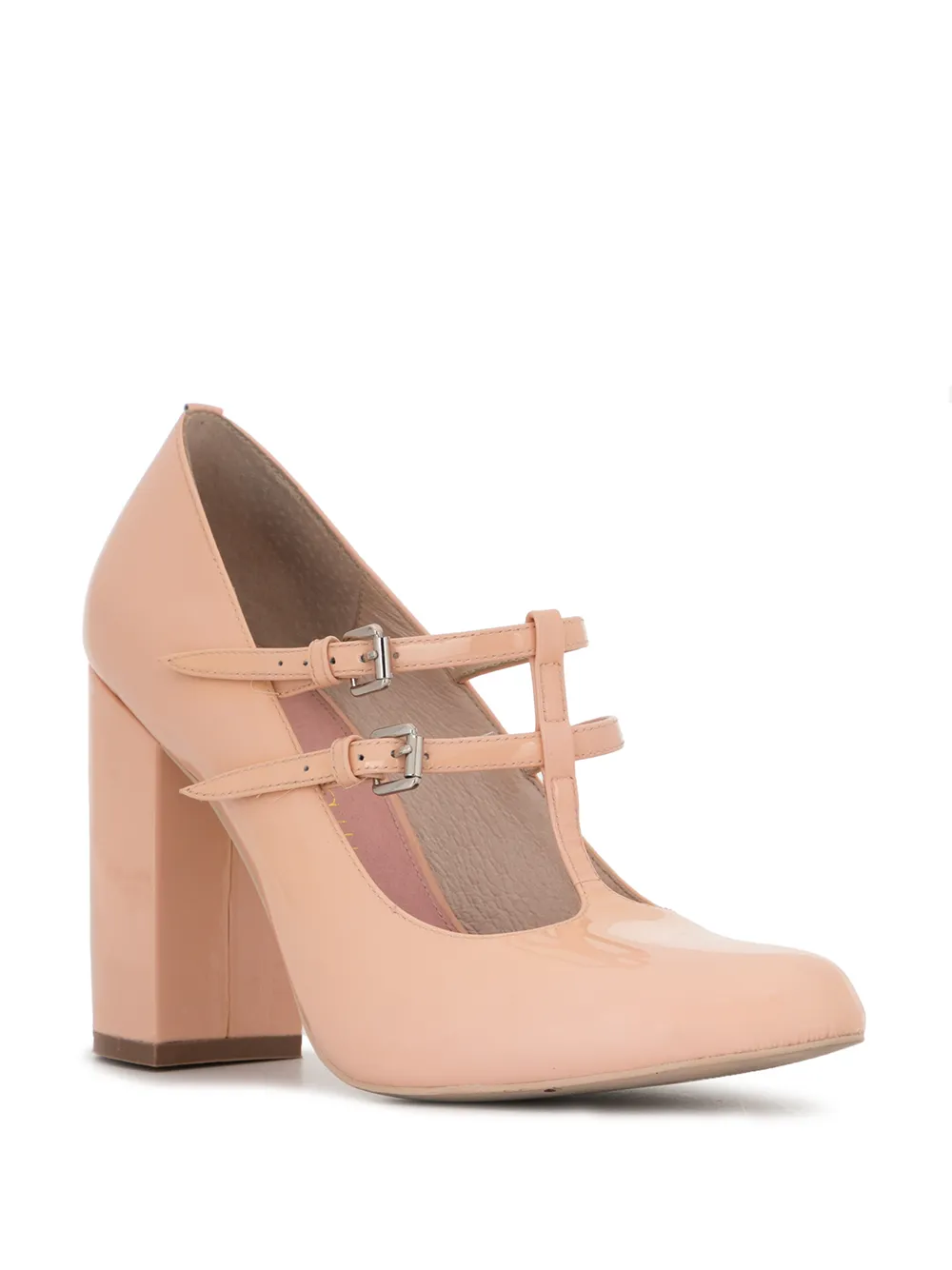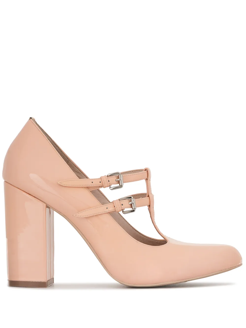 Туфли Aviary 100 с Т-образным ремешком от McGraw (МакГроу). Миндалевидный носок, лакированная кожа, Т-образный ремешок, застежки по бокам на пряжке, фирменная стелька, резиновая подошва и высокий наборный каблук. Цвет: розовый.