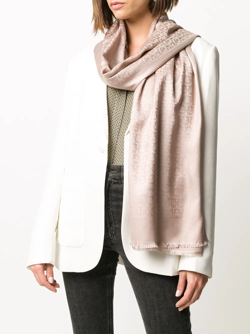 Шарф с бахромой и принтом Gancini Ferragamo, розовый