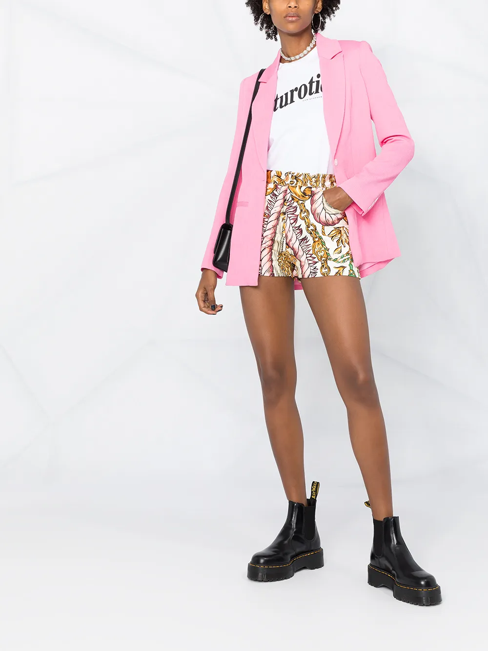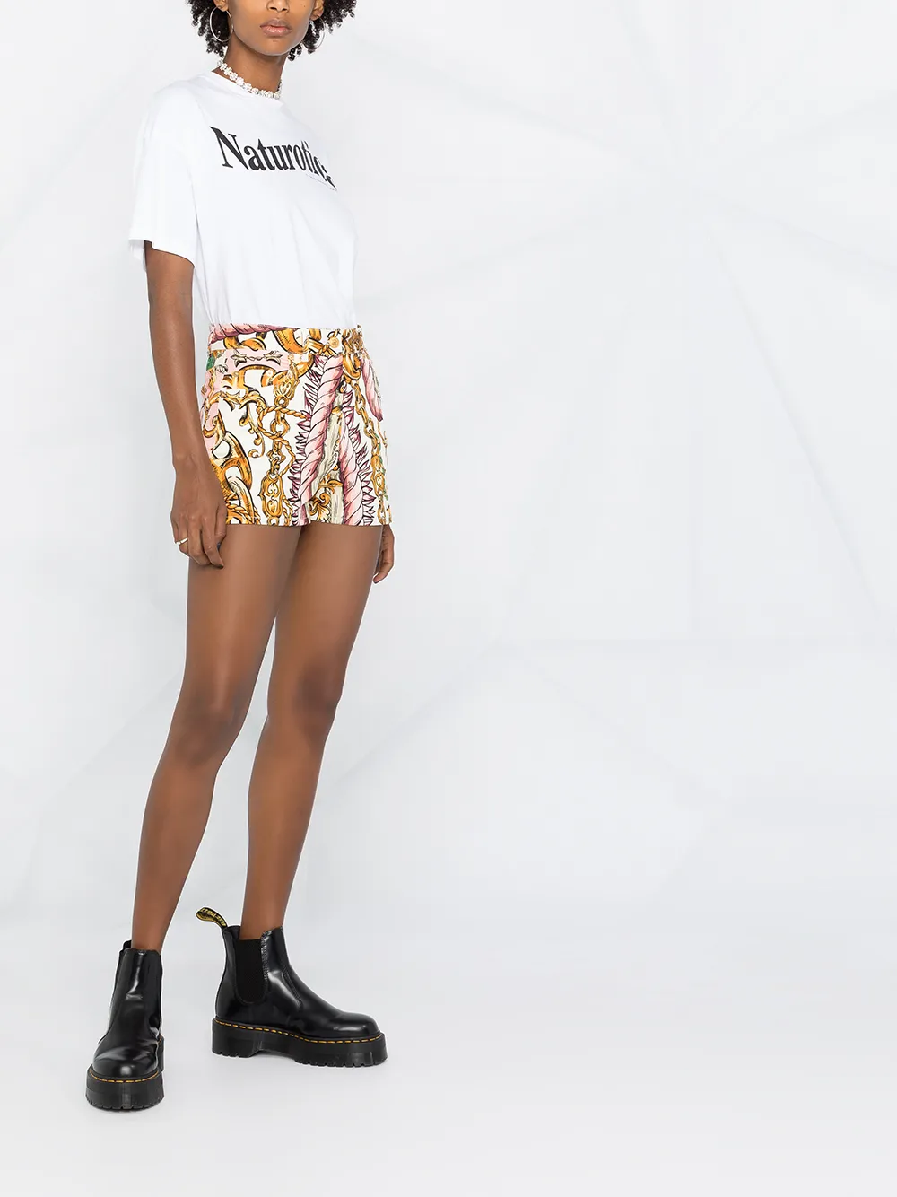 Застежка на пуговицах спереди, петли для ремня и классическая пятикарманная модель. Цвет: разноцветный.