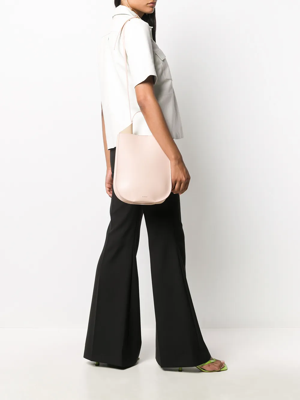 Ручка с плоским верхом, ремень на плечо, магнитная застежка и внутренний накладной карман.