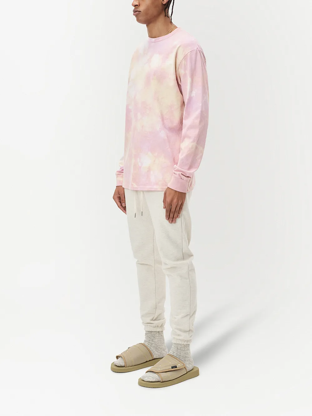 Принт тай-дай, круглый вырез, длинные рукава и рукава с узкими манжетами. Цвет: розовый.