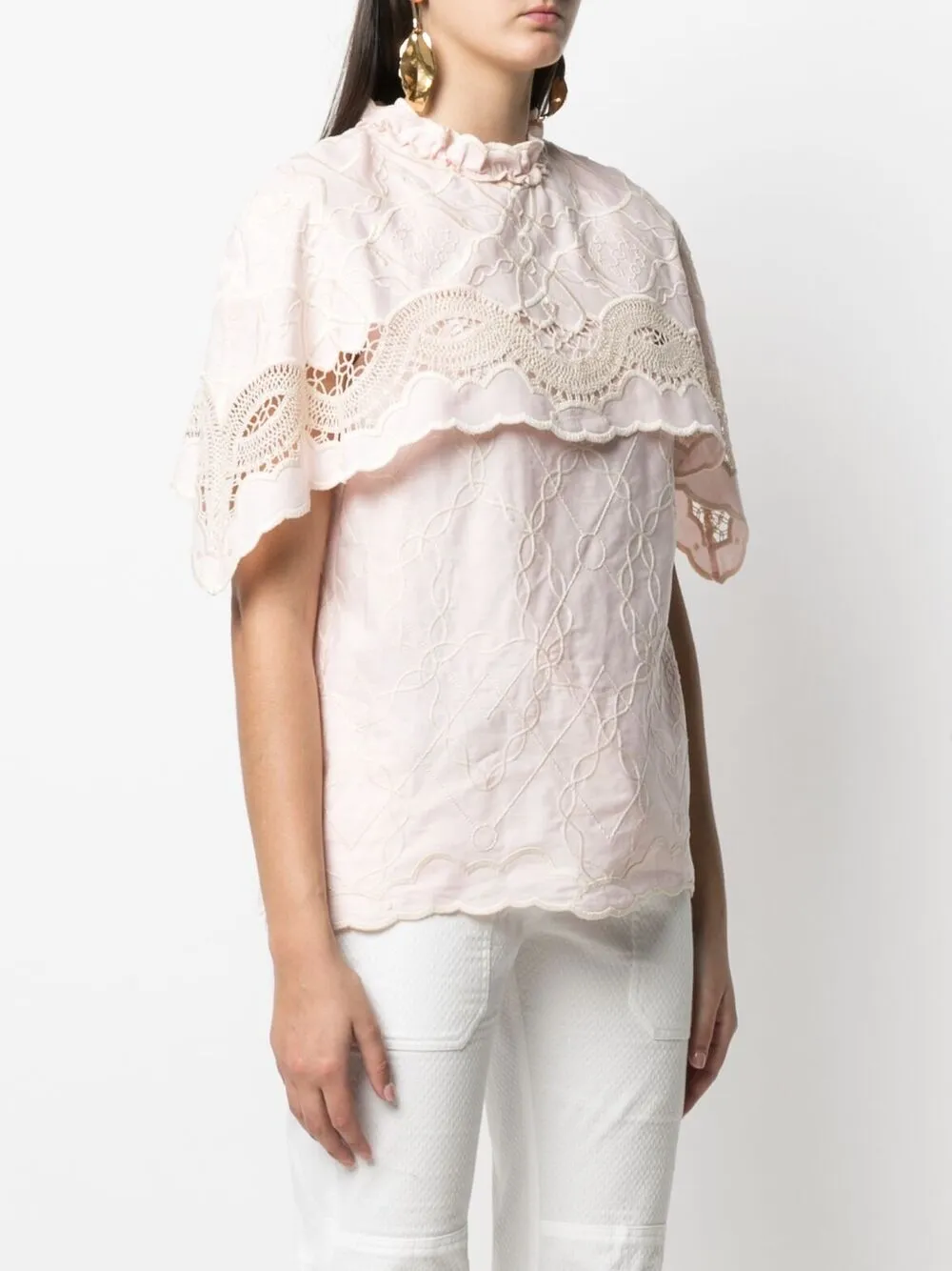 Блузка с короткими рукавами и вышивкой Alberta Ferretti, розовый