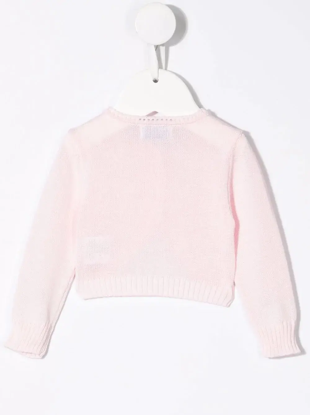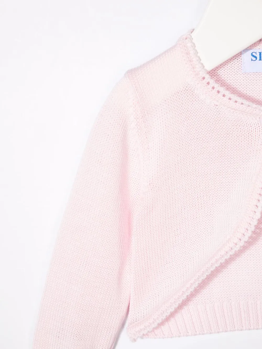 Трикотажный материал, V-образный вырез и длинные рукава. Цвет: розовый.