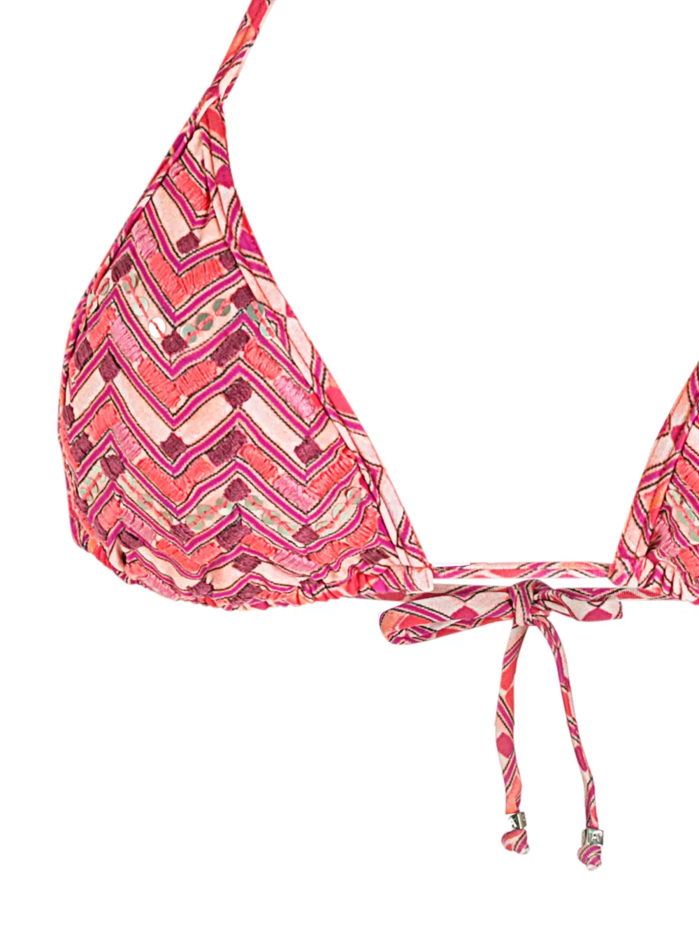 Принт шеврон, треугольная форма, завязки вокруг шеи, застежка на завязке сзади, низкая посадка и завязки по бокам. Цвет: разноцветный.