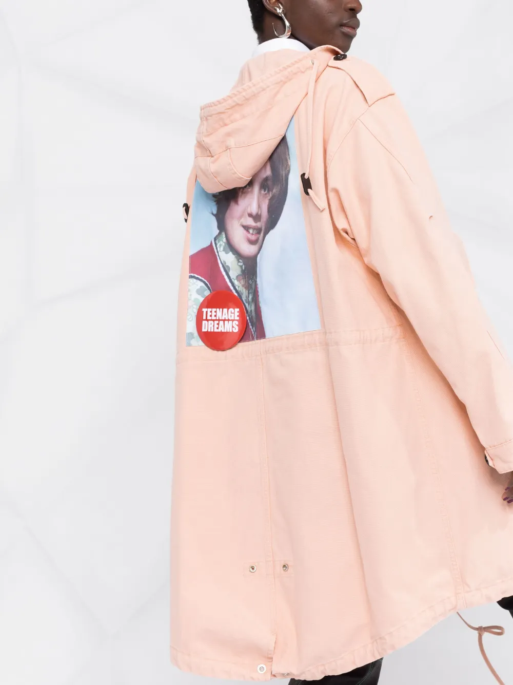 Пальто с капюшоном и фотопринтом Raf Simons, розовый