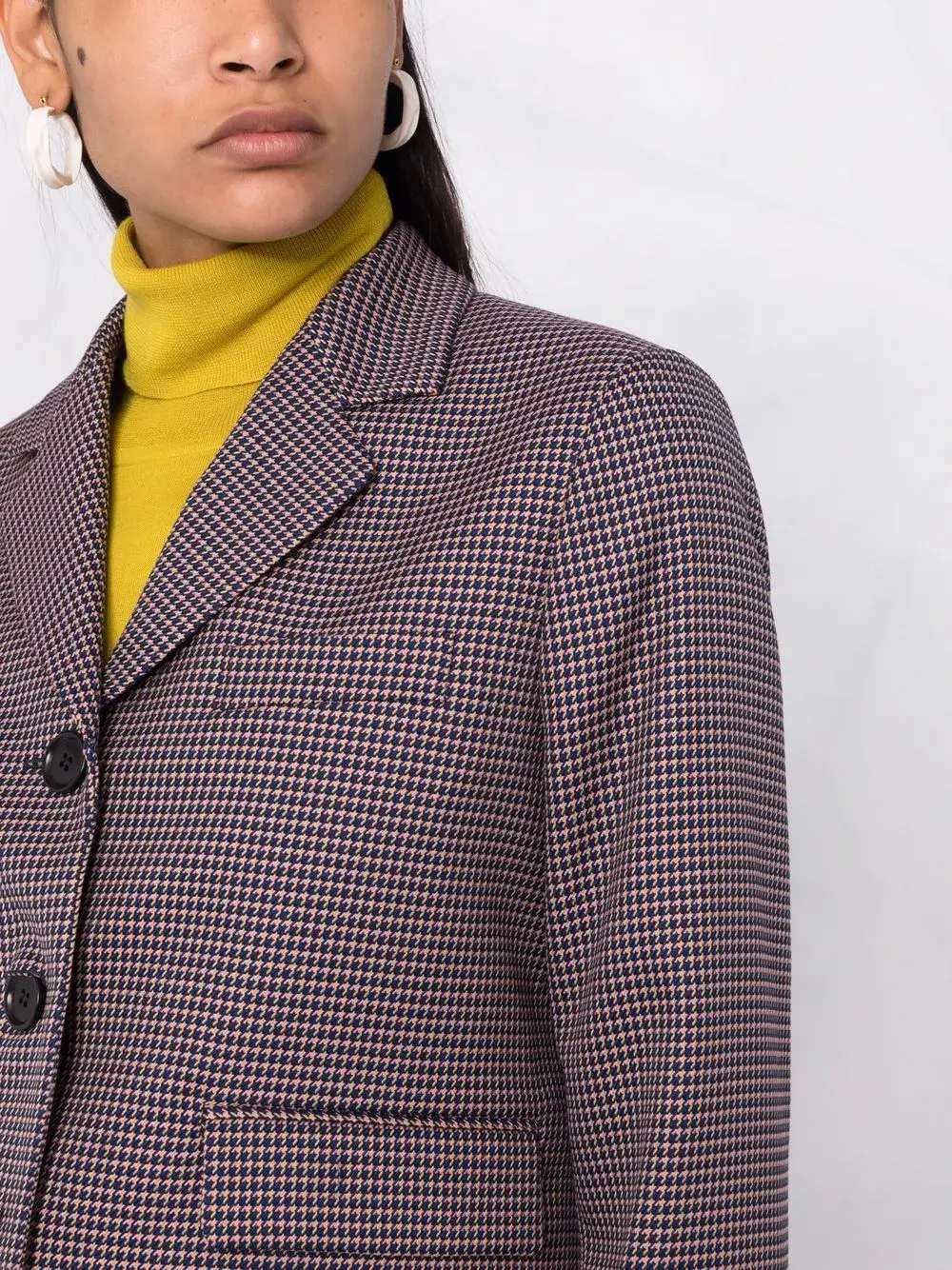 Принт в ломаную клетку, классические лацканы, застежка на пуговицах спереди, два передних кармана с клапанами, длинные рукава и манжеты на пуговицах. Цвет: розовый.