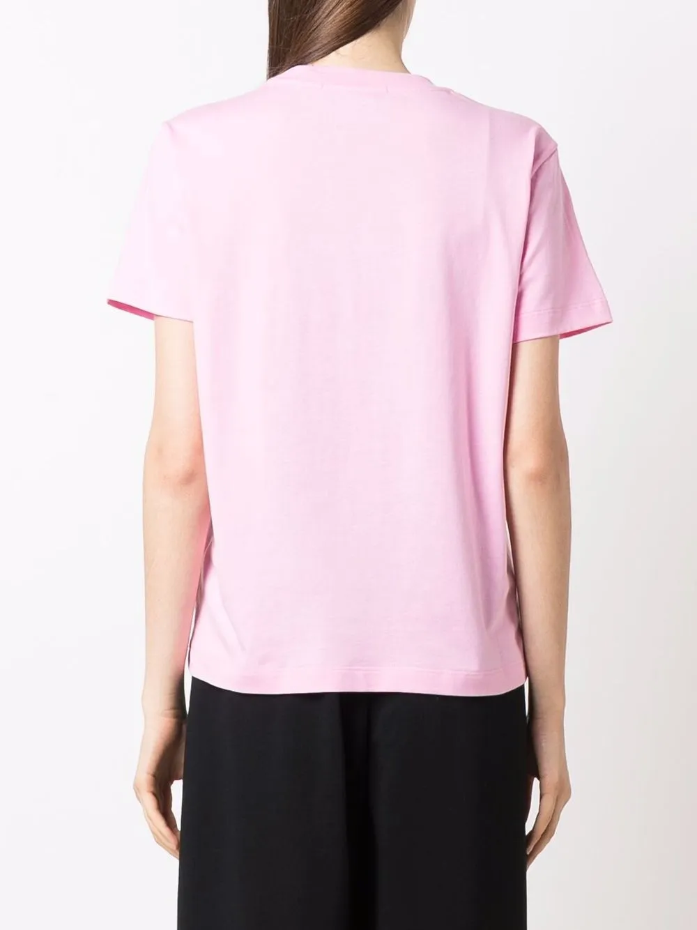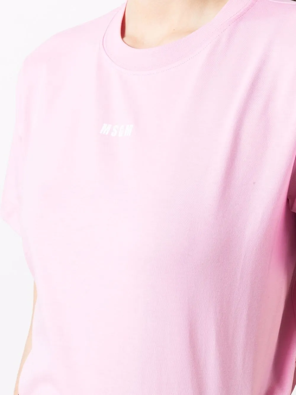Логотип спереди, круглый вырез, короткие рукава и прямой подол.