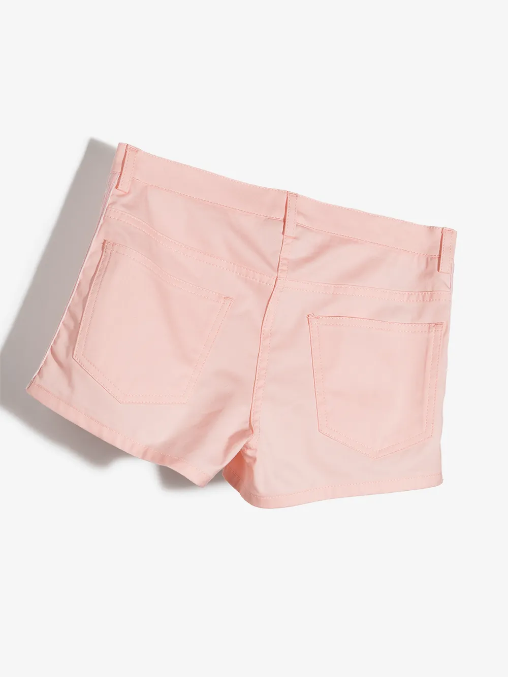 Обработанный деним, отделка с изображением логотипа, завышенная талия, застежка на молнии и пуговице спереди, классическая пятикарманная модель и длина до бедер. Цвет: розовый.