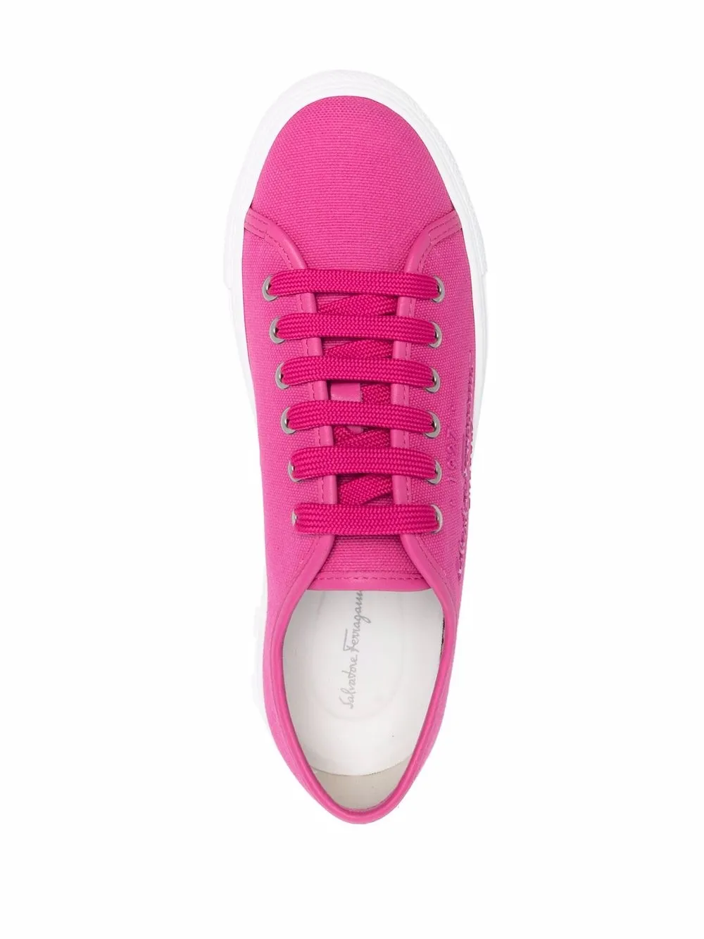 Розовый переработанный хлопок тисненый логотип сбоку закругленный носок шнуровка спереди стелька с логотипом плоская резиновая подошва POSITIVELY CONSCIOUS: Эта вещь сделана из переработанных или вторично использованных материалов, на производство которых уходит меньше воды, энергии и сырья. Мы рекомендуем стирать вещи из переработанных синтетических тканей в специальном мешке, чтобы микропластик не попадал в сточные воды.