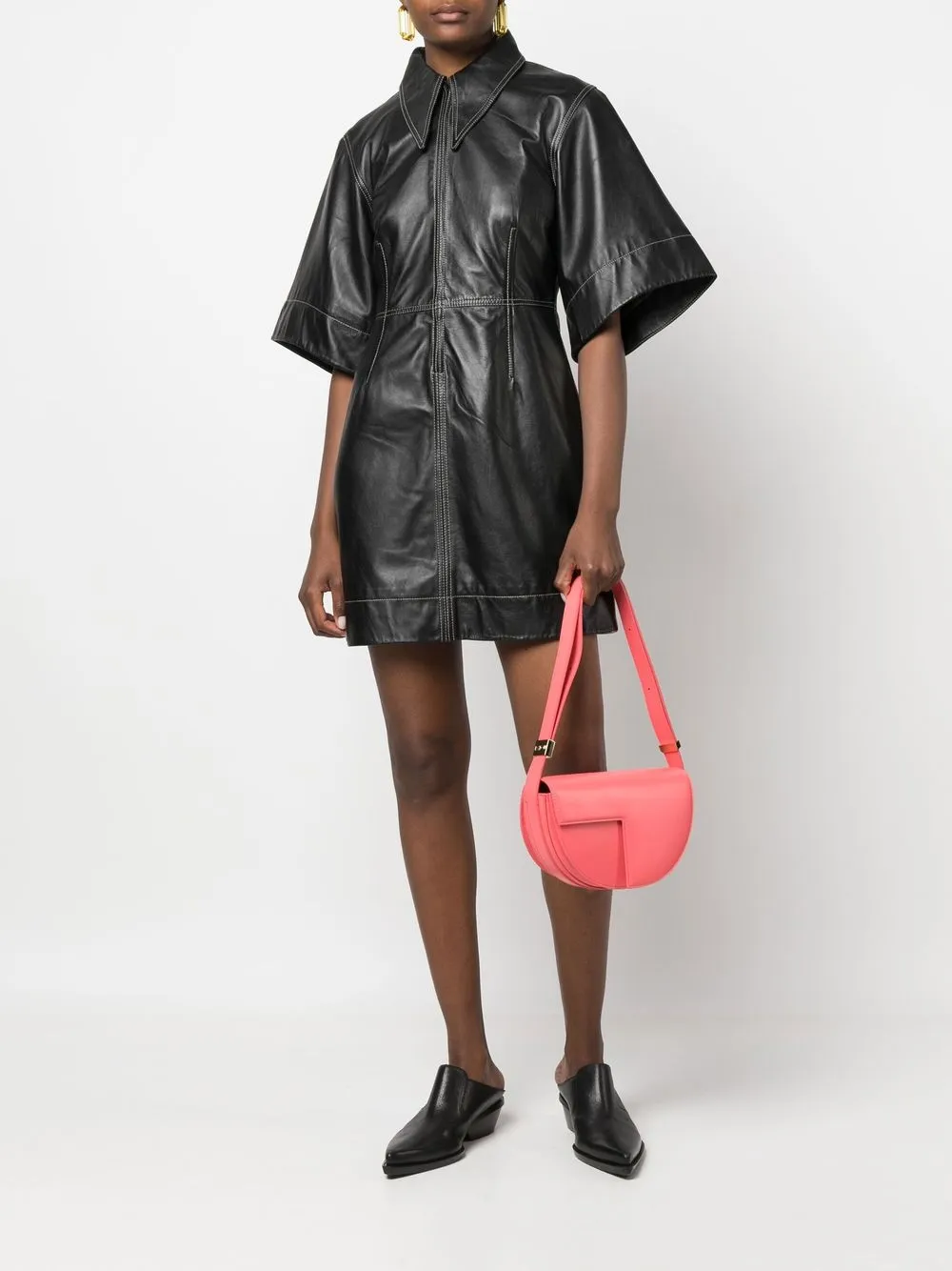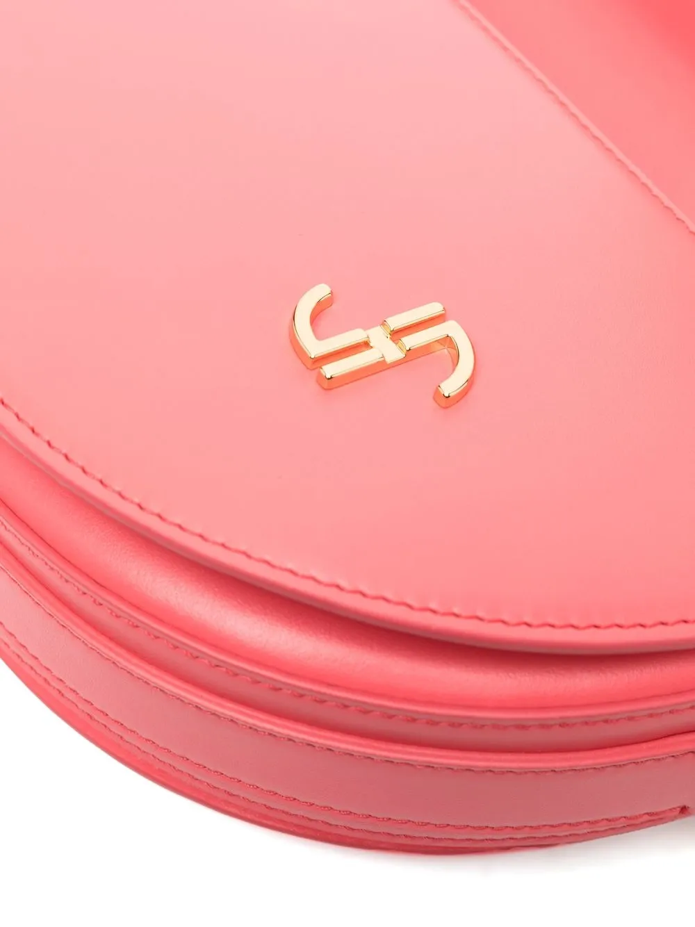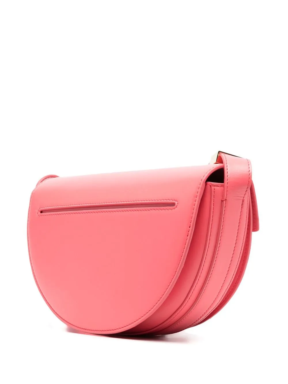 Розовый, телячья кожа, регулируемый ремень на плечо, выгравированный логотип, золотистая фурнитура, матовое покрытие, строчка в тон, прорезной карман сзади, откидной клапан и основное отделение.